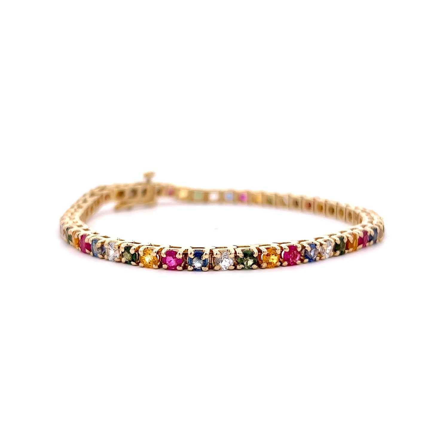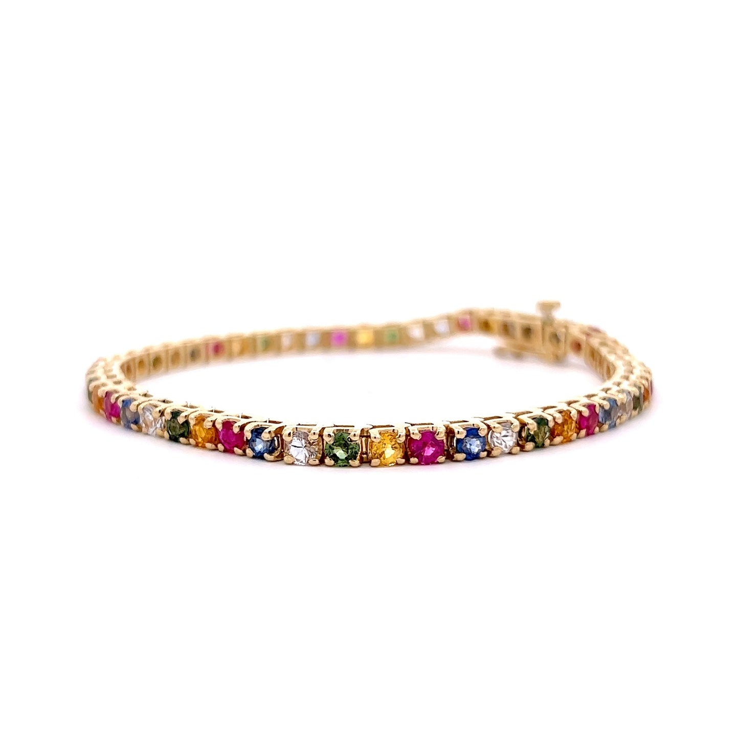 Mixed Color Sapphire Tennis Bracelet in 14k Yellow Gold