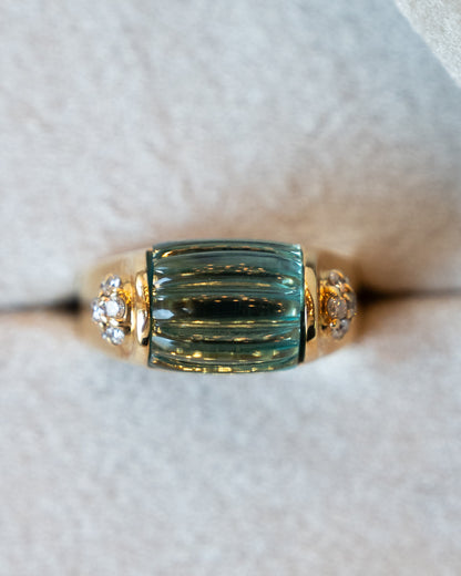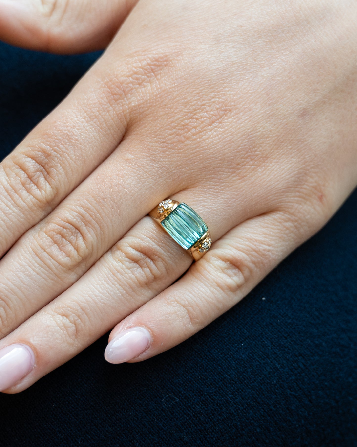 6.01 Cabochon Blue Topaz & Diamond Cocktail Ring in 18k