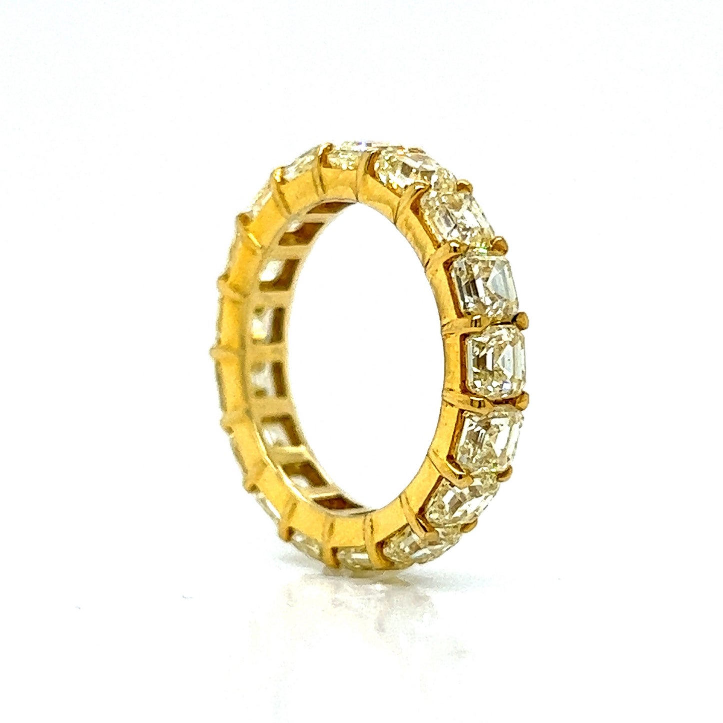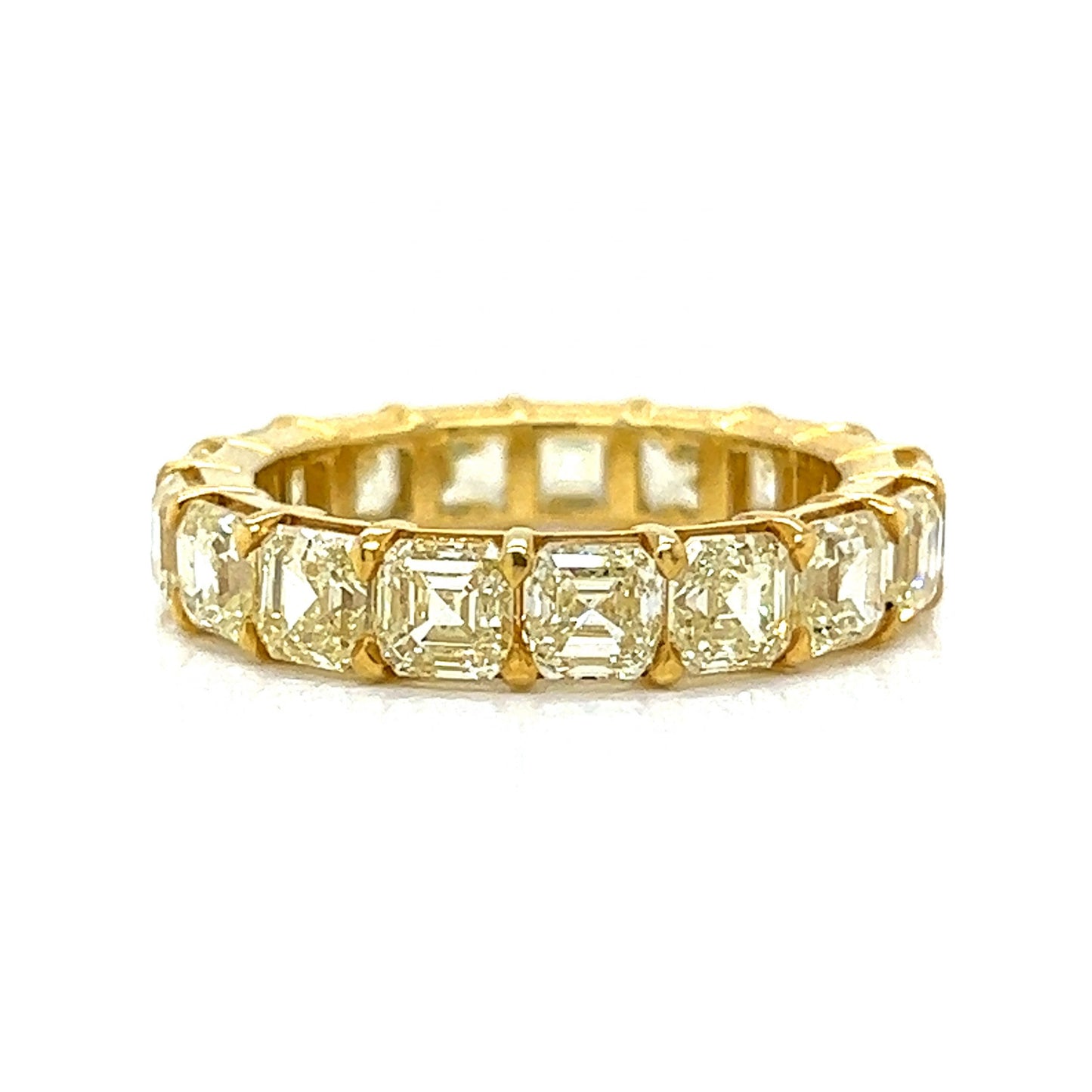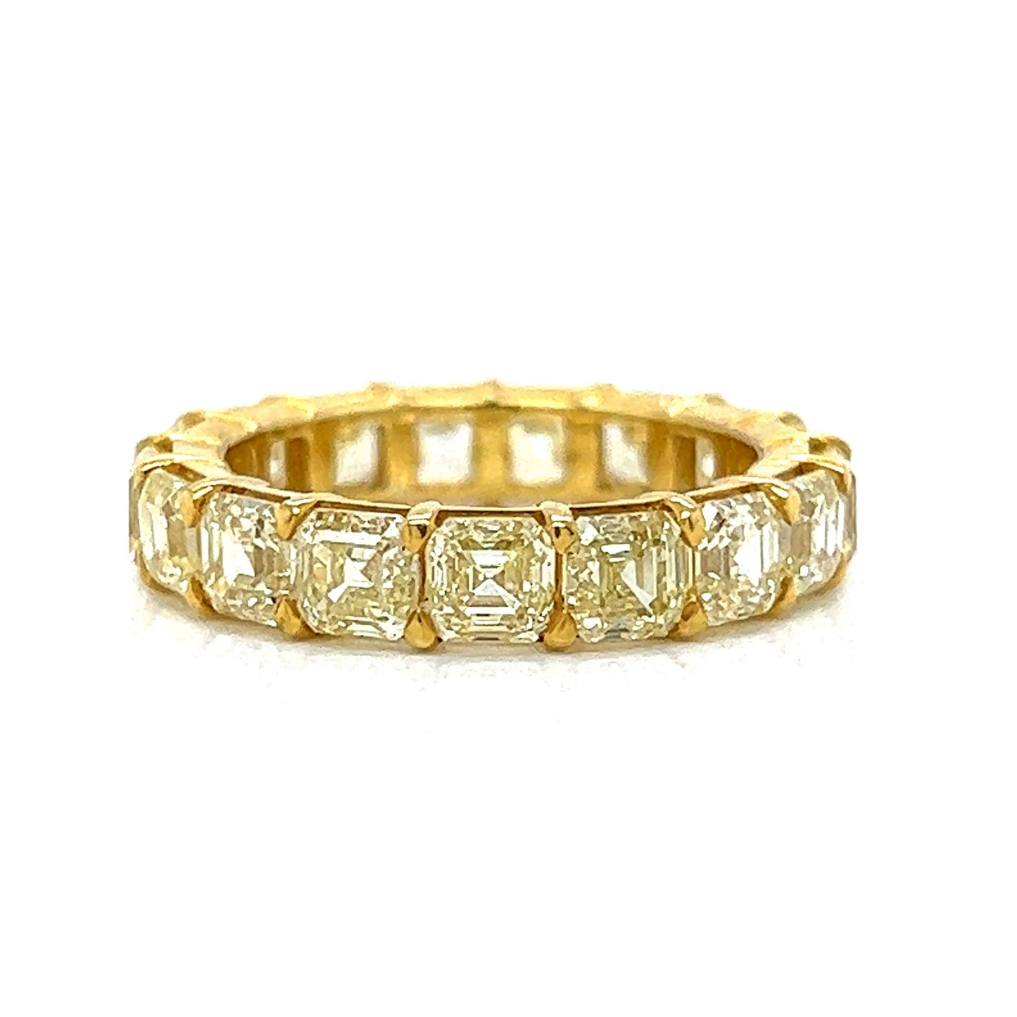 6.70 Fancy Yellow Asscher Cut Diamond Eternity Band in 18k