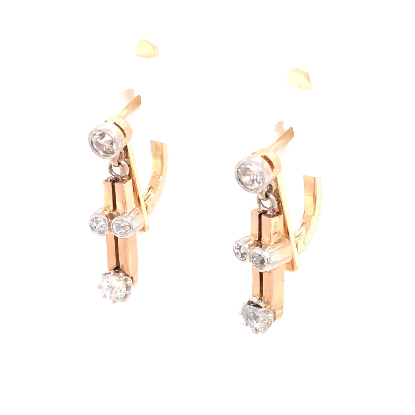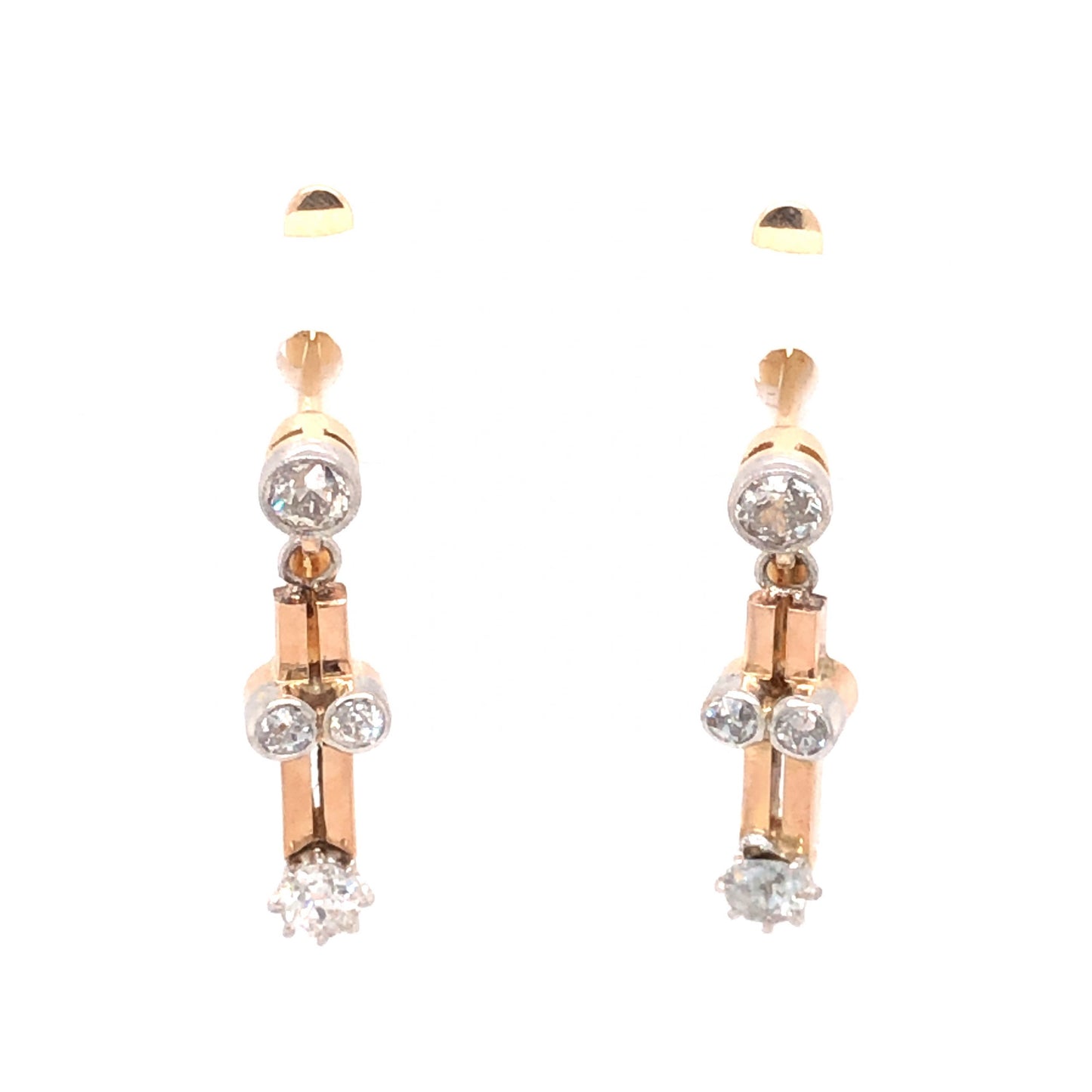 .60 Art Deco Diamond Earrings in 18k Yellow Gold and Platinum