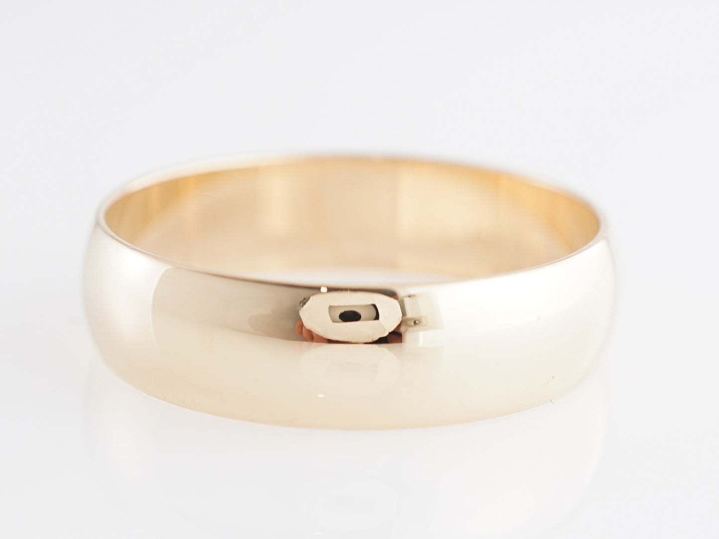 6mm Half Round Wedding Band in 14k Yellow Gold. This classic men’s wedding ring features a thick, 14k yellow gold band with a beautiful, polished finish. Weighing 5.2 grams and reaching 1.15mm above the finger, this band is both durable and comfortable to wear. Any questions on resizing? Contact one of our jewelry experts for more details!