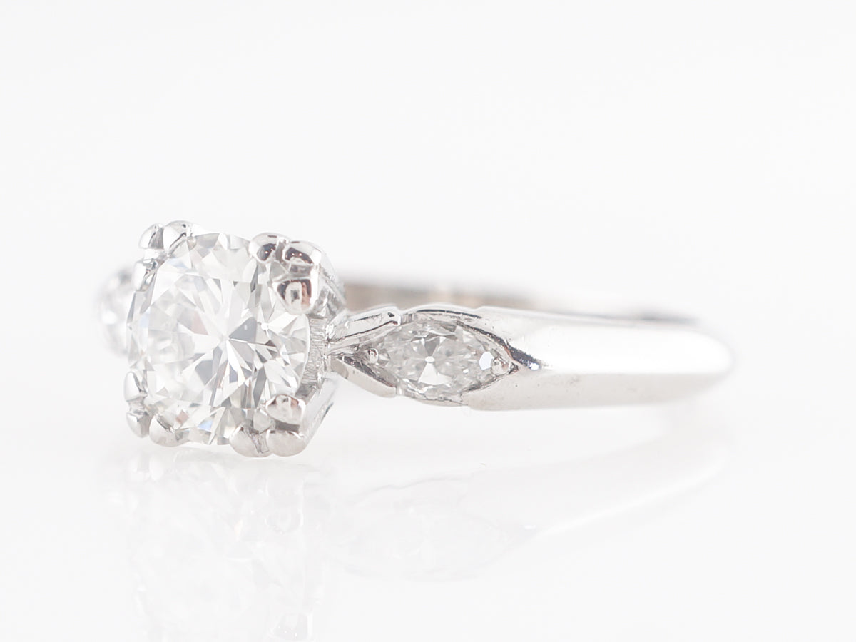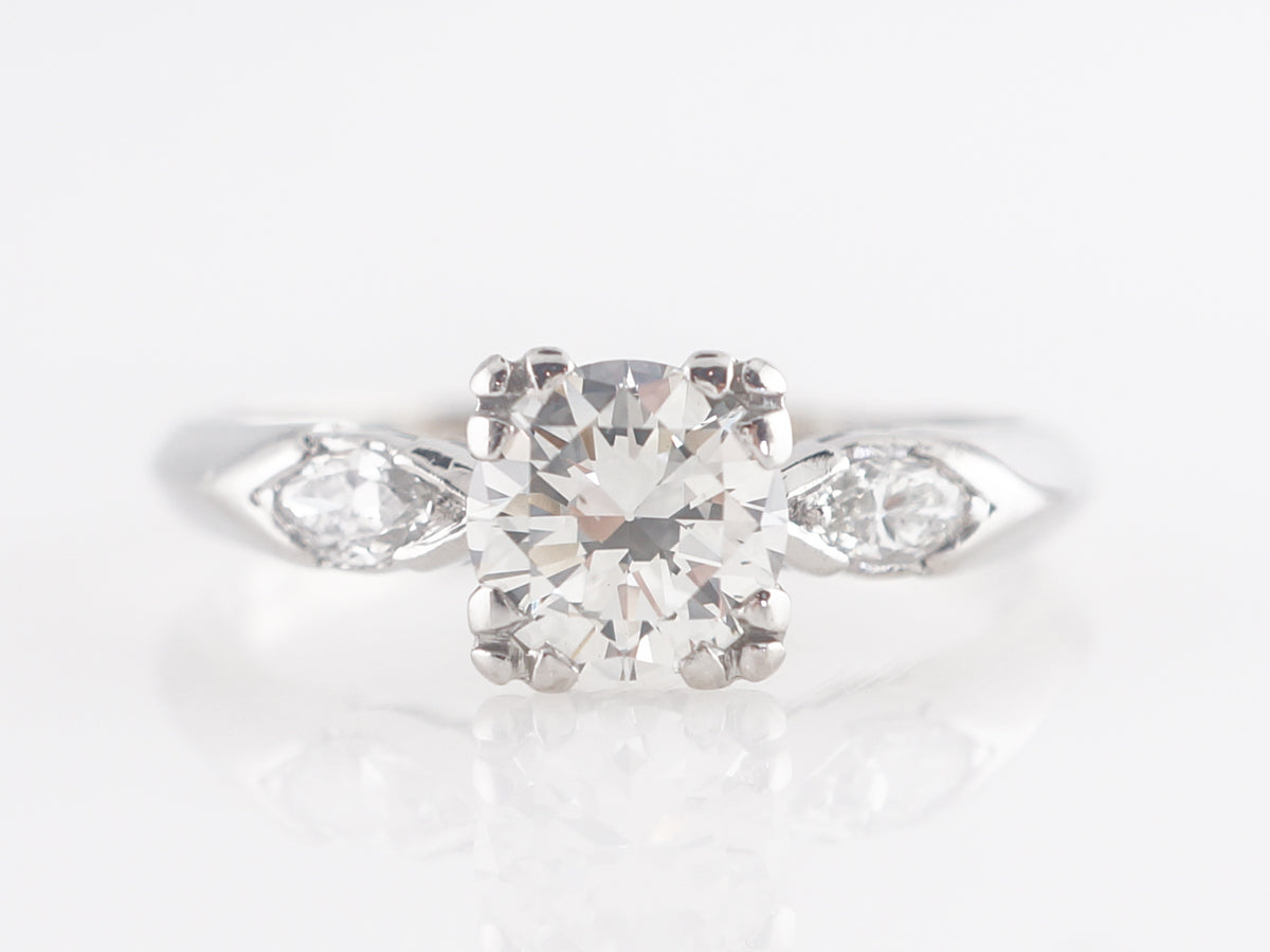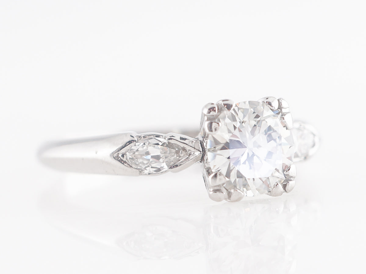 .75 Art Deco Diamond Engagement Ring in Platinum. This beautiful Art Deco engagement ring features a .75 carat transitional cut diamond set in platinum. The center stone is held by fishtail prongs and sits in a square shaped mounting above a thin shank with two(2) marquise cut accent diamonds. Such a gorgeous accent stone cut to enhance the classic Art Deco style.