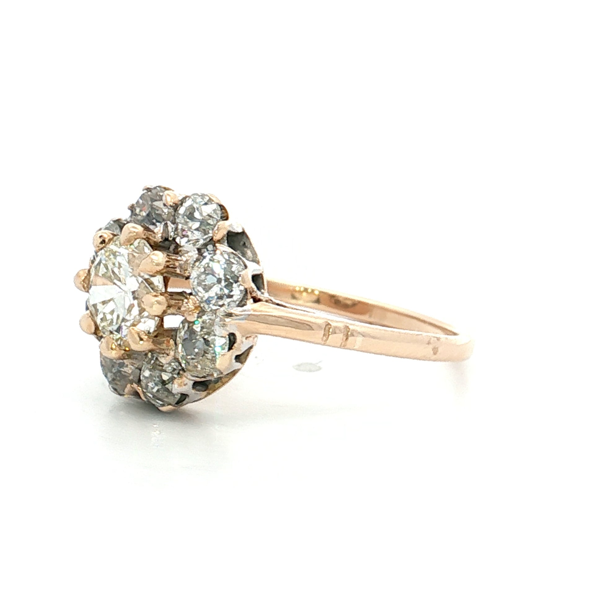 .75 Vintage Victorian Diamond Cluster Engagement Ring 14k