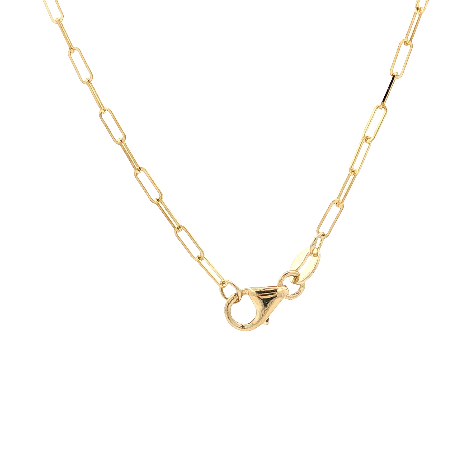 The SI2 clarity indicates some visible inclusions under close inspection, though they typically don't interfere with the overall brilliance. Heart-shaped cuts require precise symmetry to show their best face-up appearance, with light returning evenly through both lobes. The pendant hangs from an 18-inch paperclip chain with a lobster clasp. The yellow gold setting amplifies the diamond's natural color rather than competing with it.
