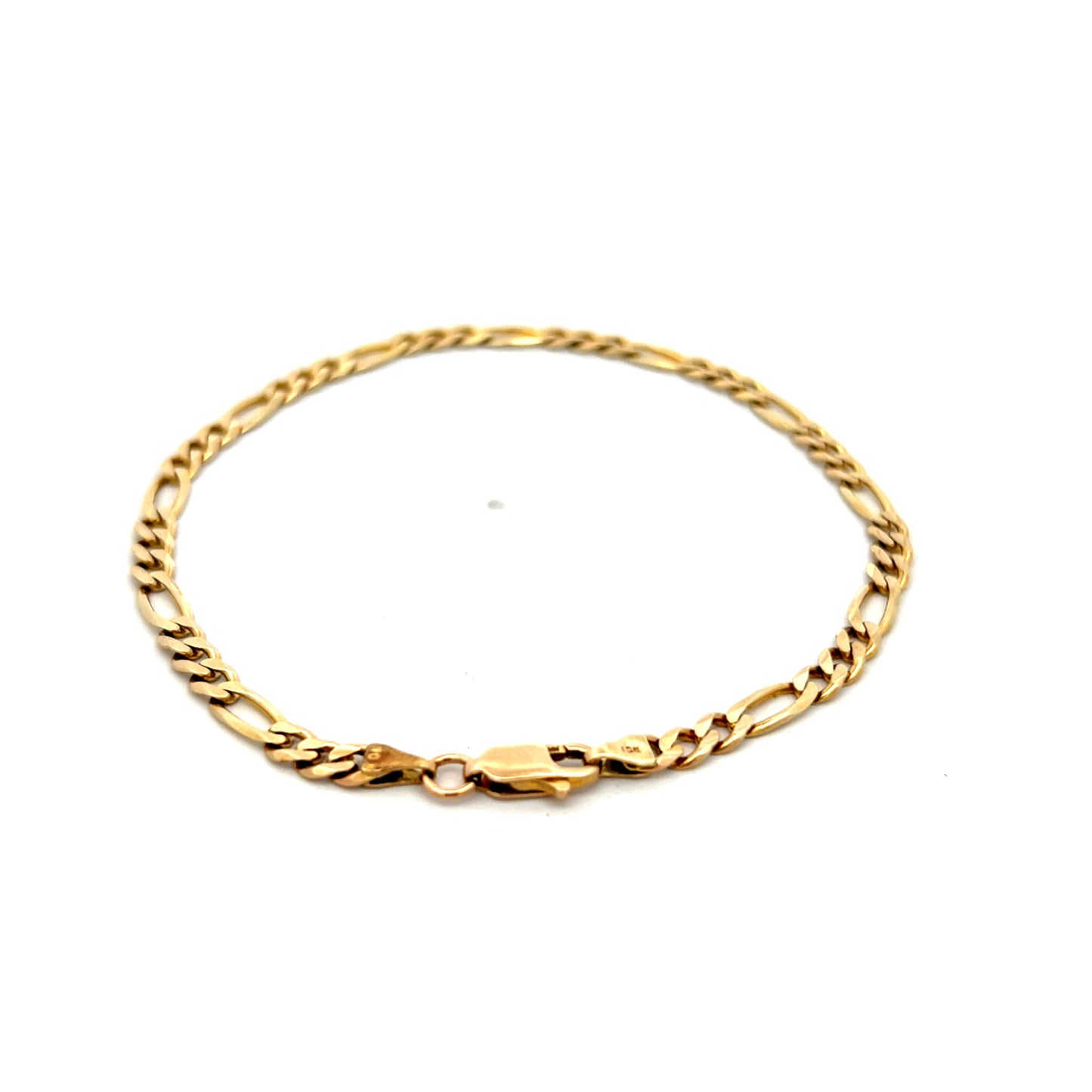 This 14 karat yellow gold figaro chain bracelet offers a sleek, unisex design. Measuring 8 inches in length, it features a classic figaro link pattern with a polished finish that. Versatile and easy to pair, this bracelet works well on its own or layered with other pieces, making it an adaptable choice for both casual and formal wear. A straightforward yet stylish addition to any accessory lineup.