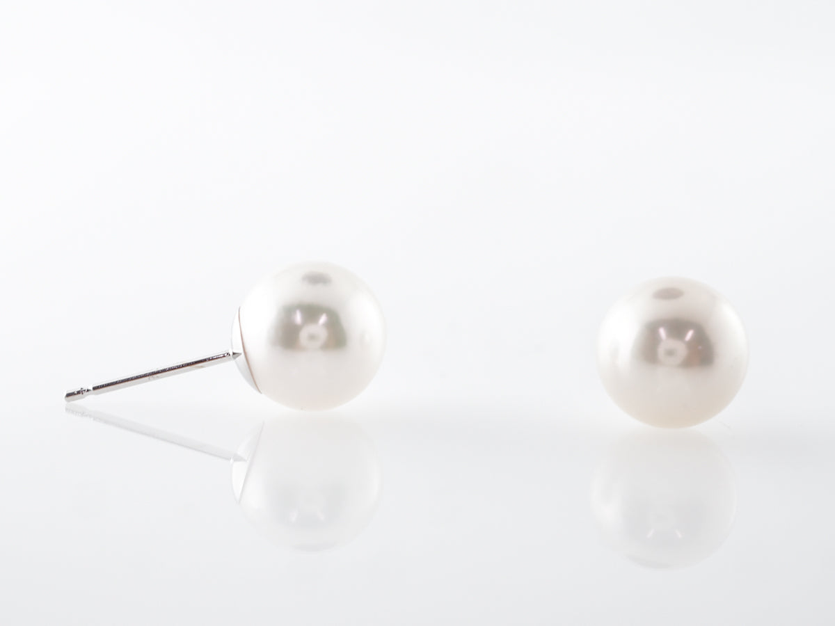 8mm Pearl Earrings in 14k White Gold. These classic pearl studs are finished in 14 karat white gold. The pearls are 8 mm and would have a place in any jewelry collection. Pearl studs are a staple across all ages and a perfect for everyday wear.