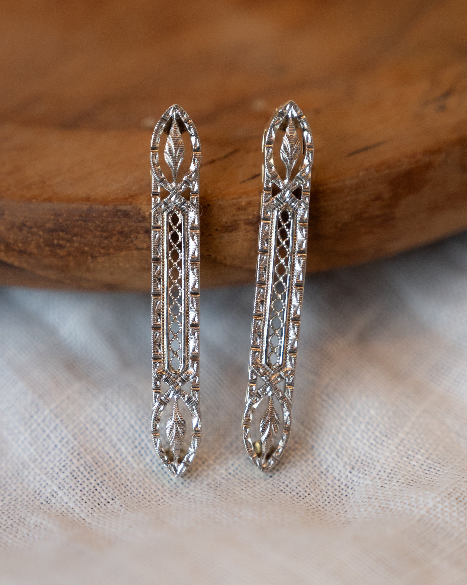 Antique Art Deco Filigree Earrings in 14k