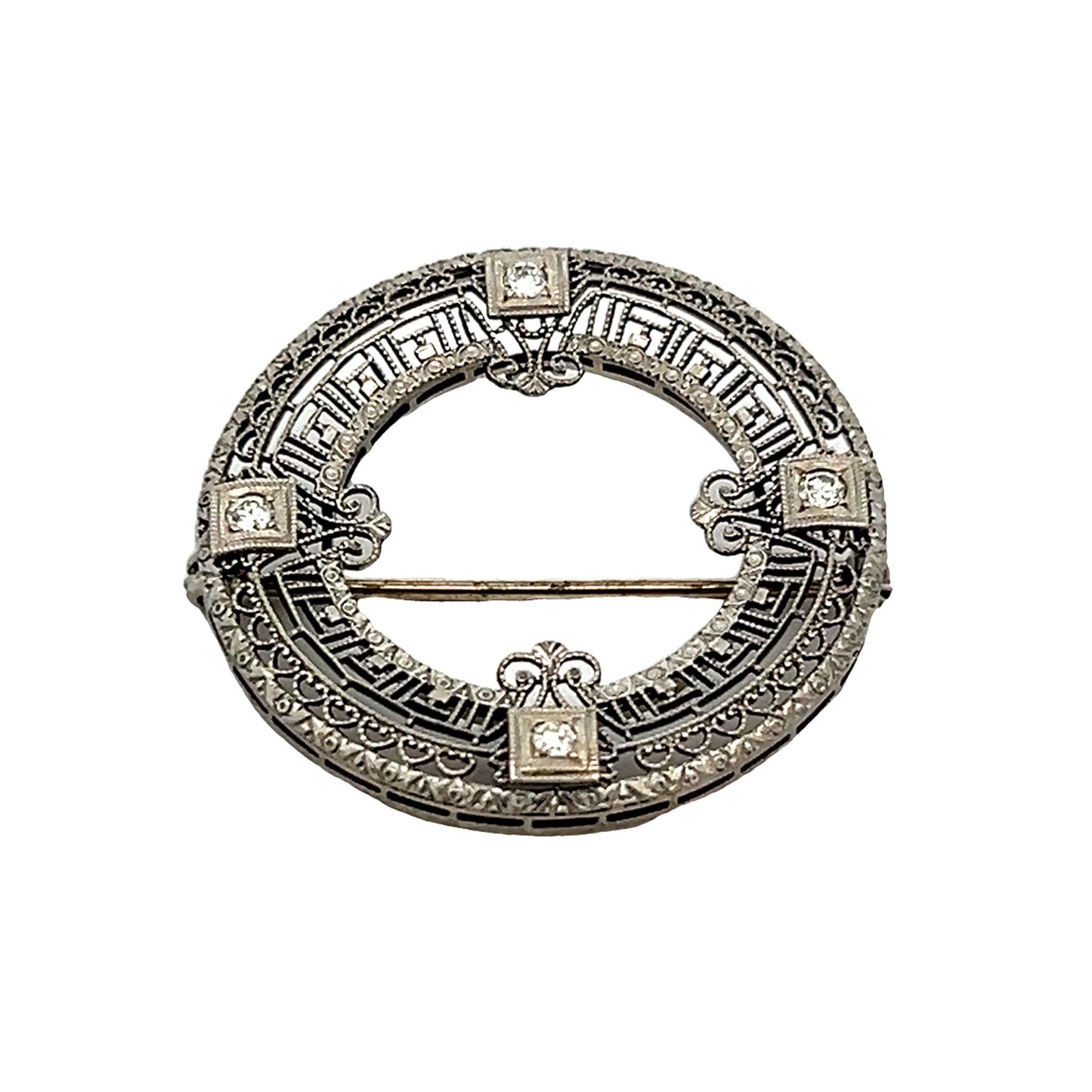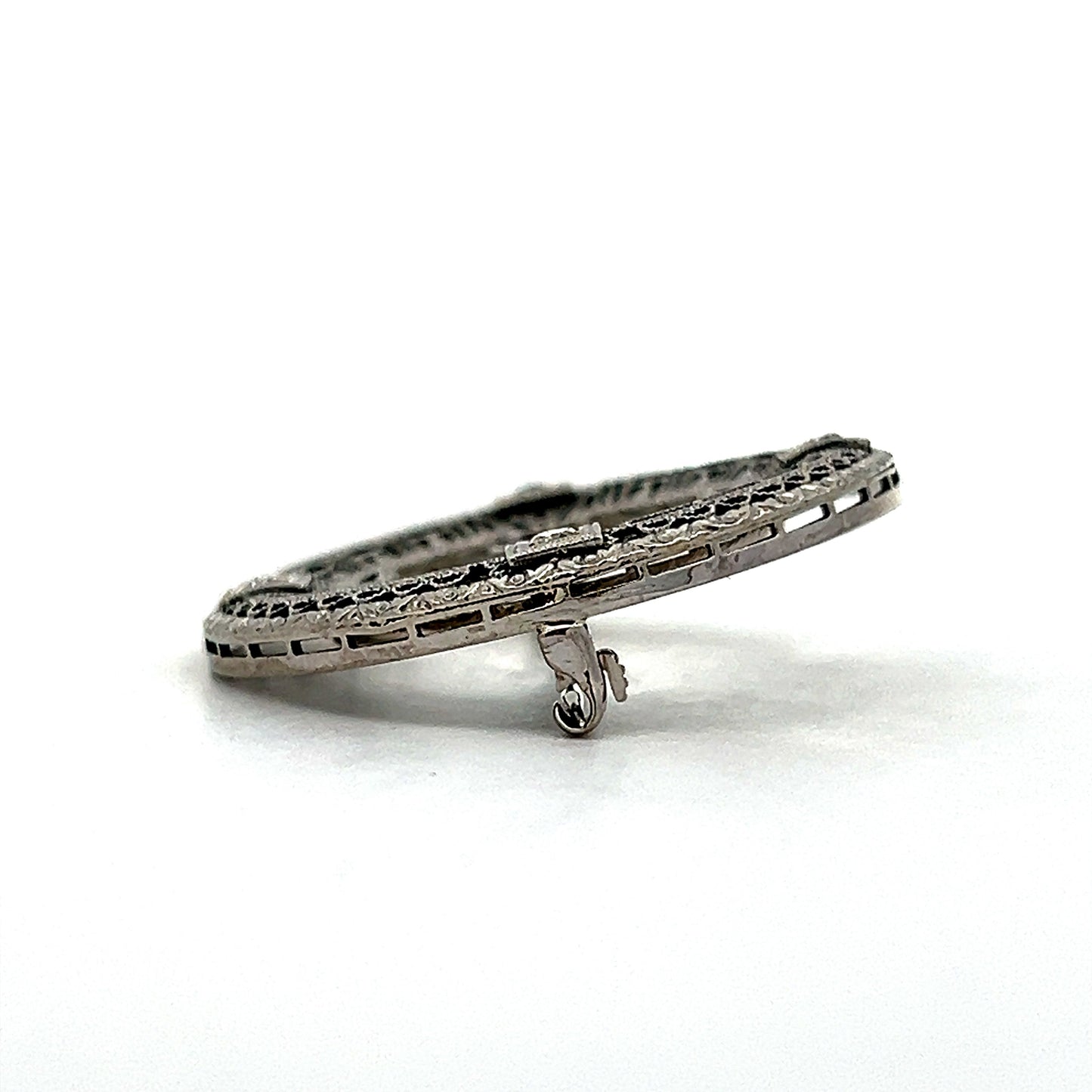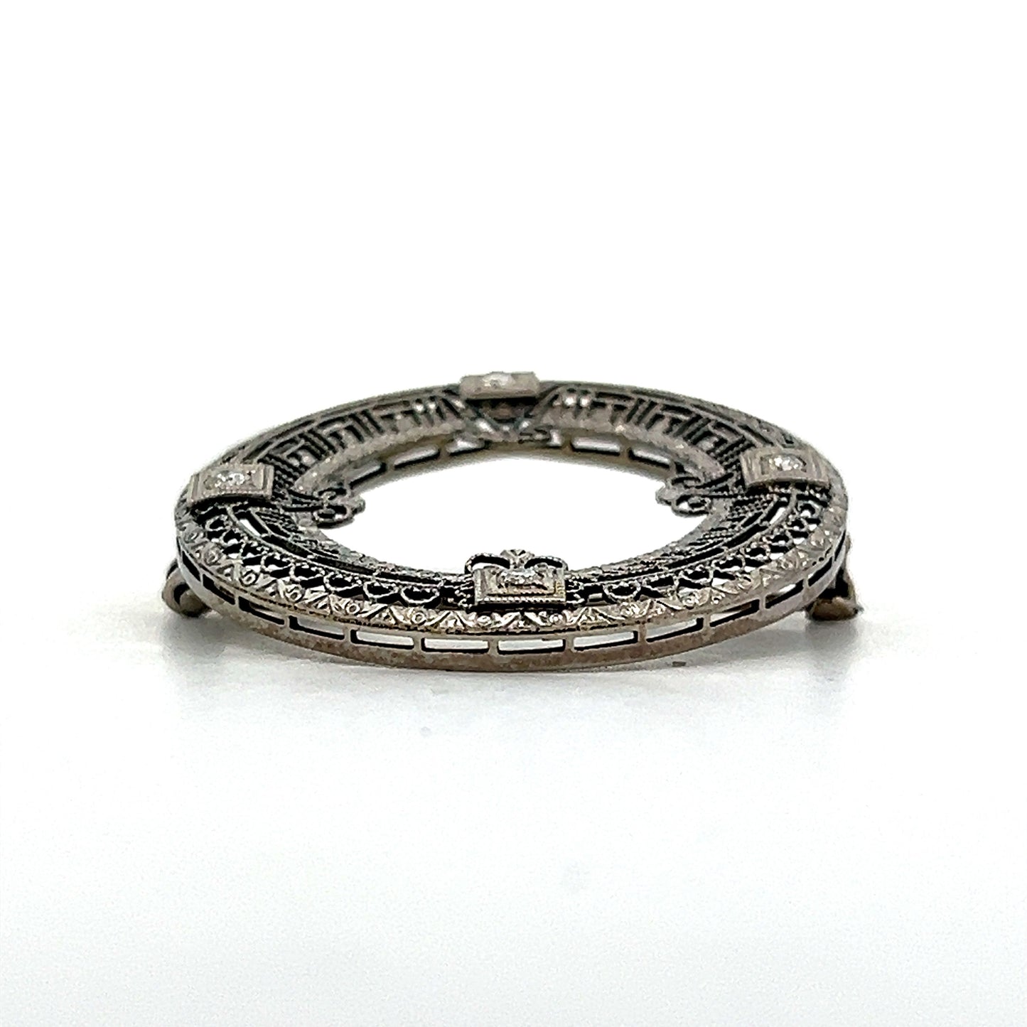 Antique Art Deco Geometric Filigree Brooch in 14k White Gold