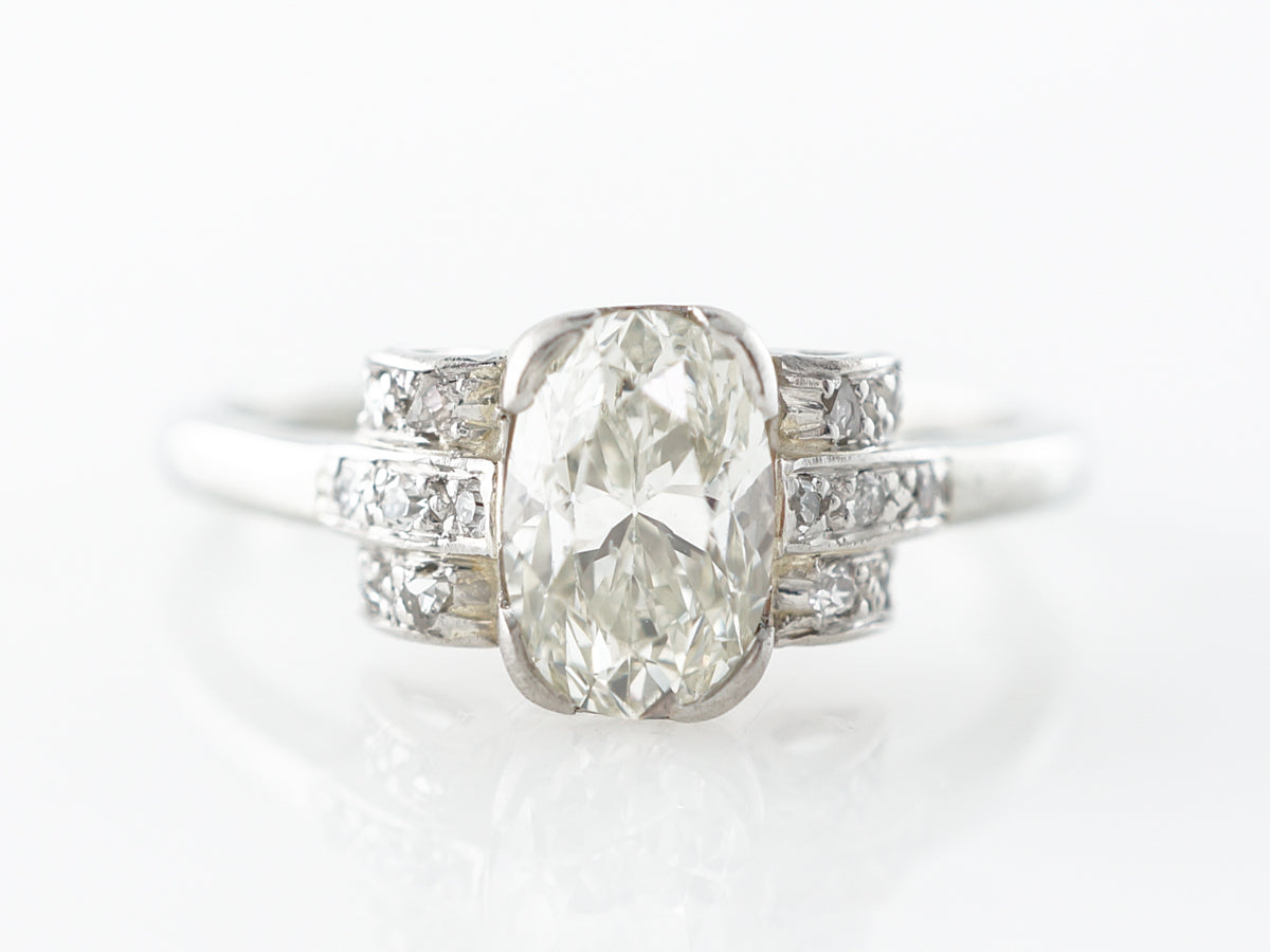 Antique Art Deco Oval Engagement Ring in Platinum & 18k