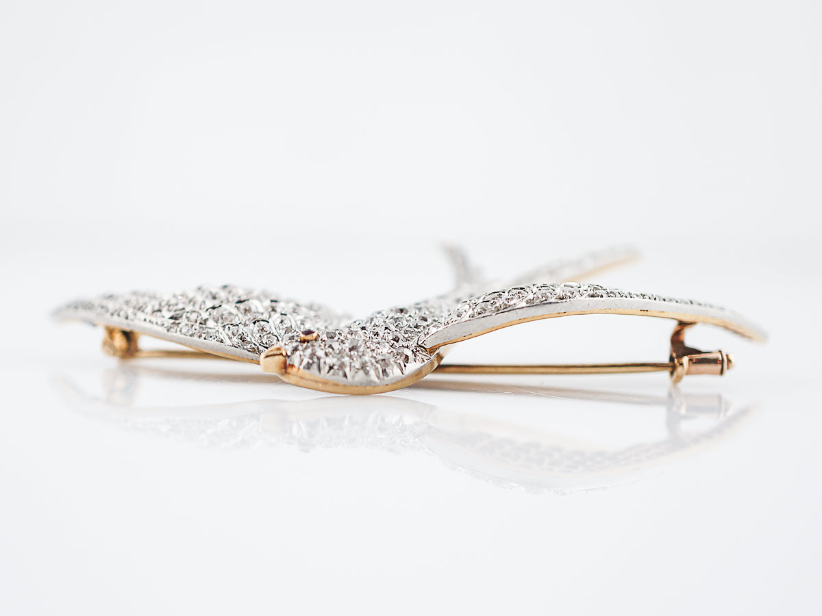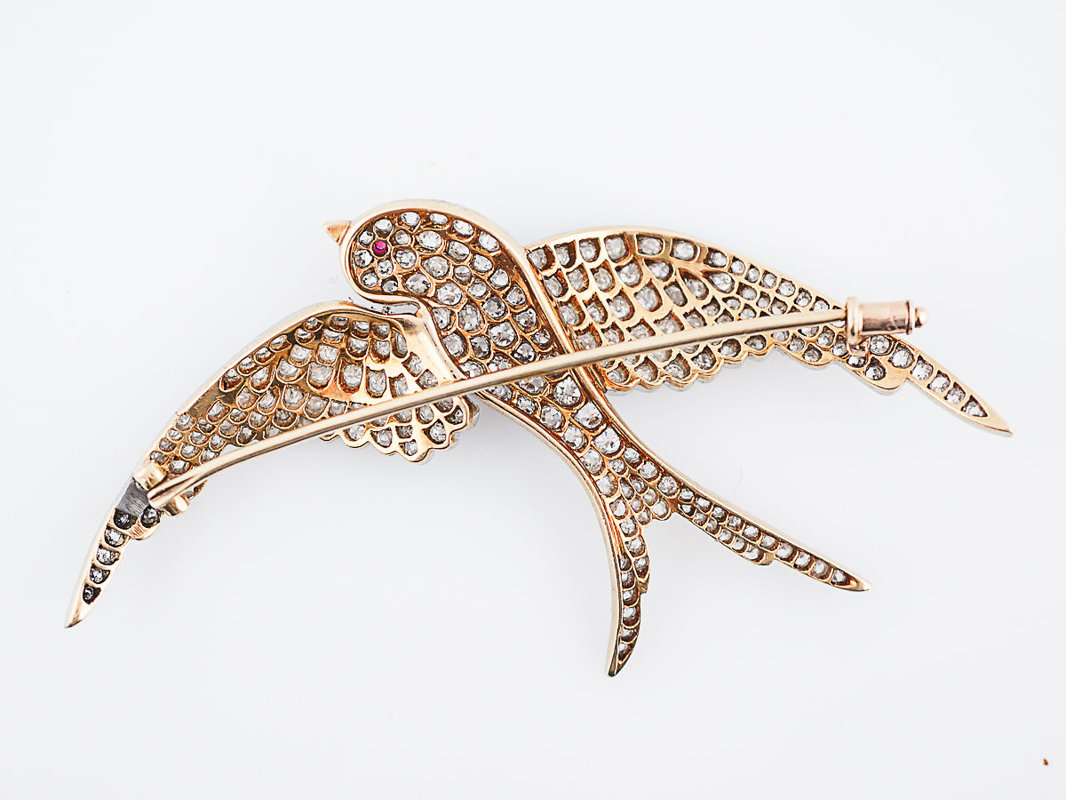 Antique Bird Brooch Edwardian 3.07 Old European Cut Diamonds in Platinum & 18k Yellow Gold
