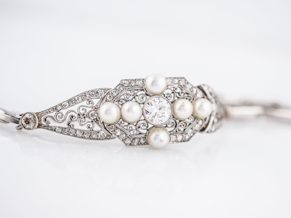 Antique Bracelet Art Deco .66 Old European Cut Diamond & Pearls in Platinum