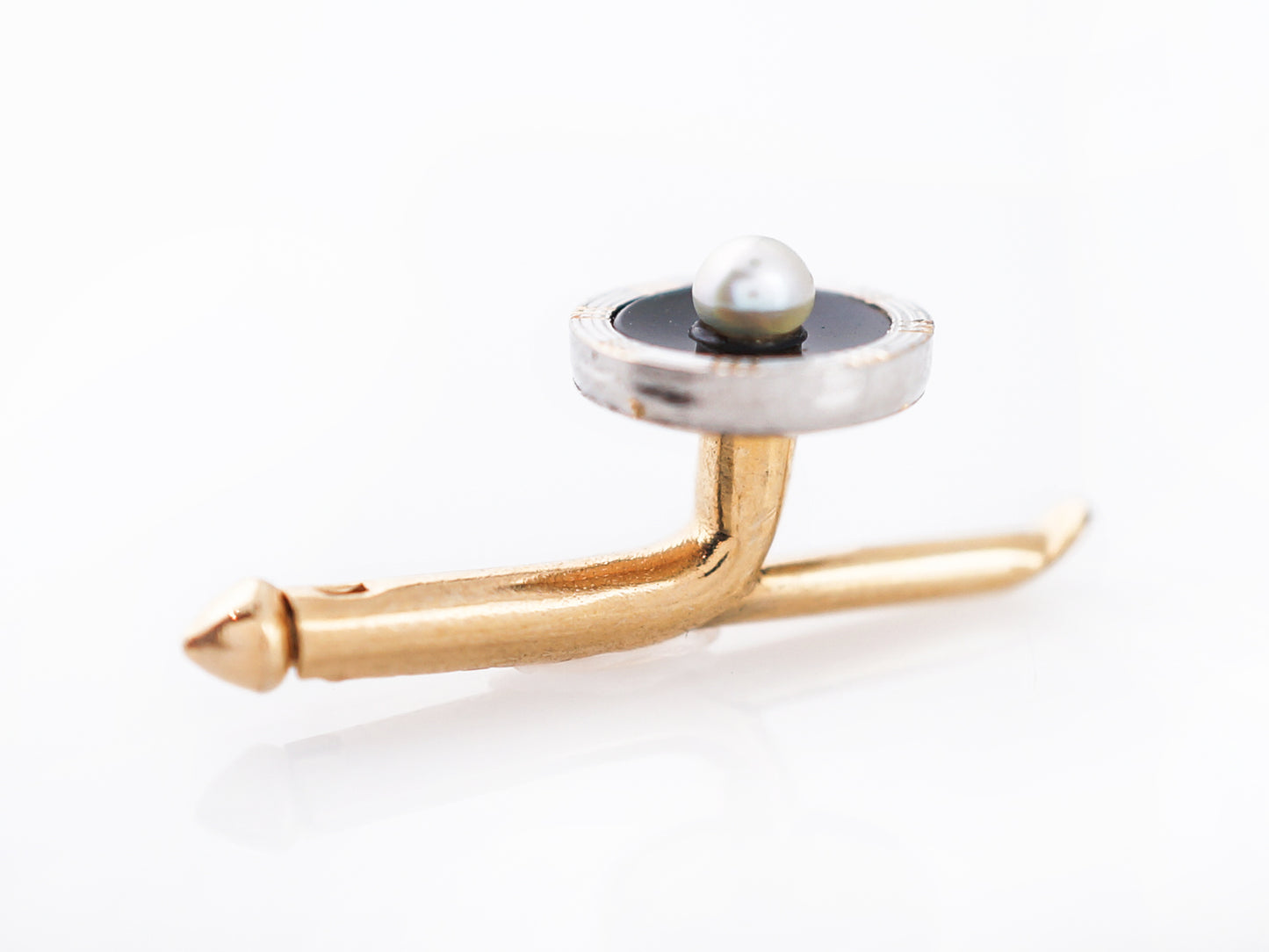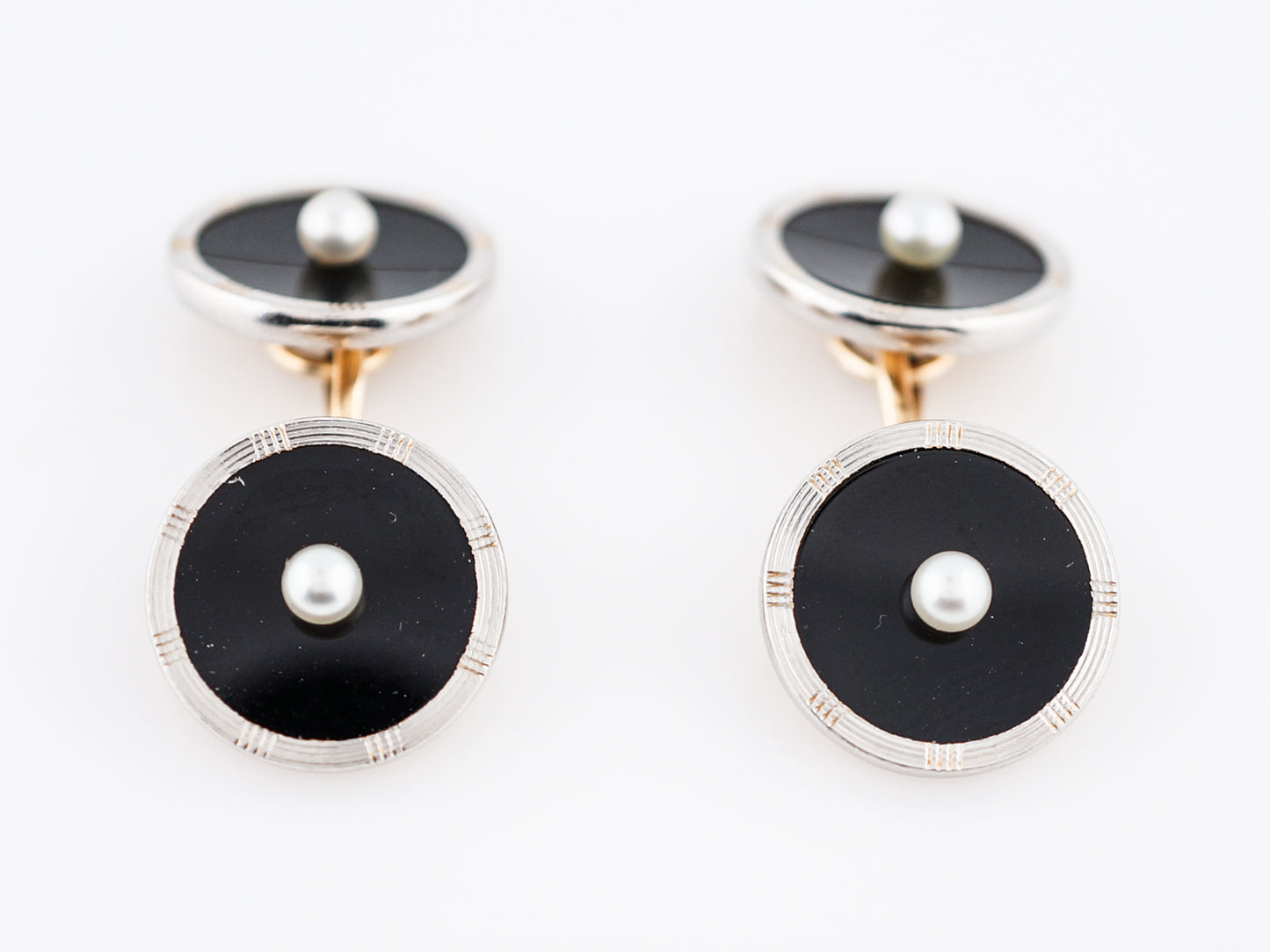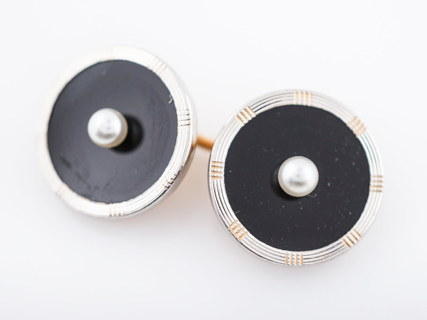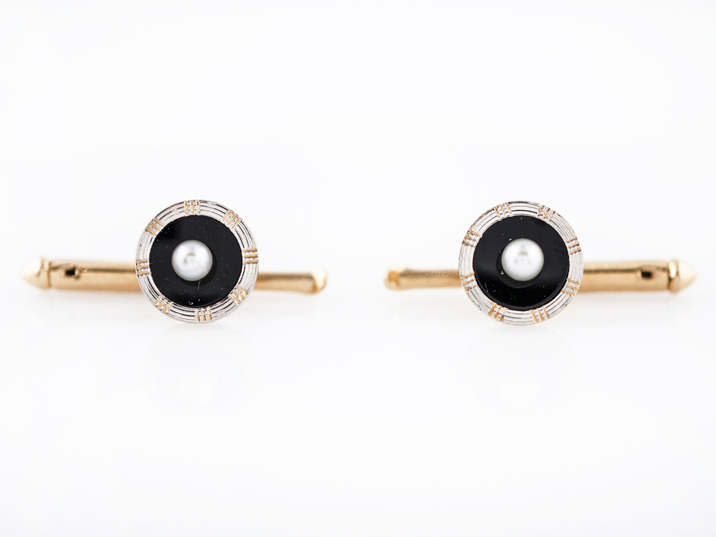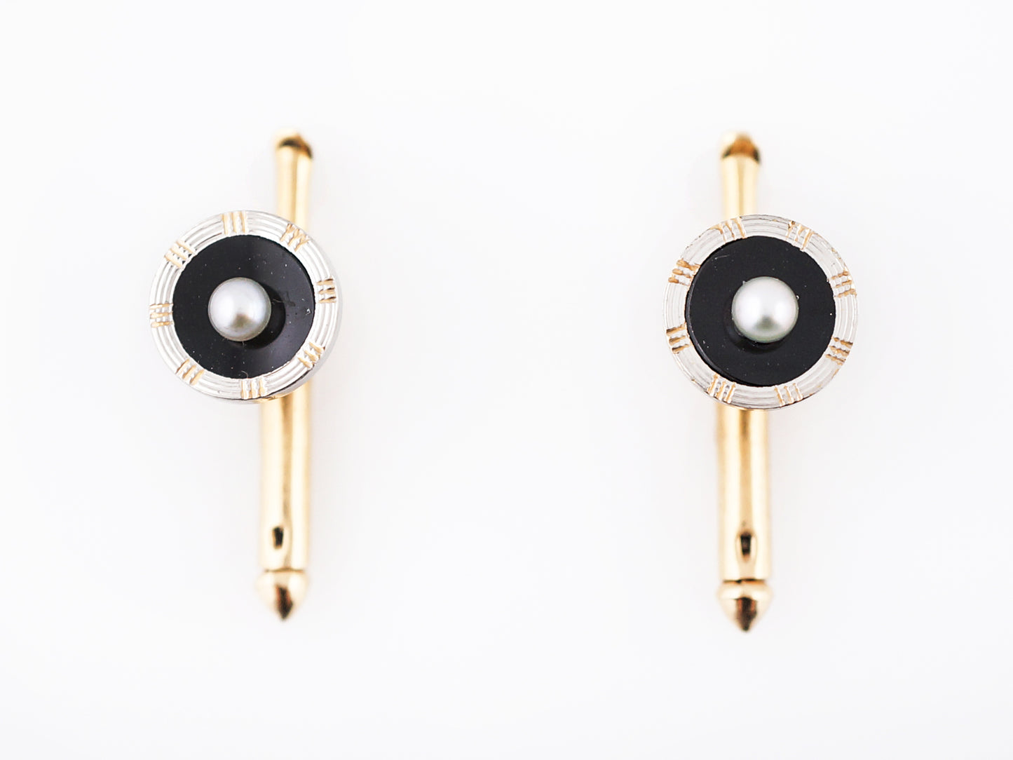 Antique Cufflinks Art Deco Onyx & Pearl Stud Set in 14k Yellow Gold