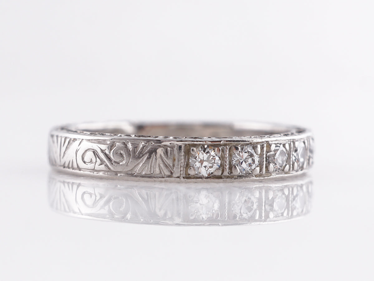 Antique Deco Wedding Band w/ Diamonds & Engraving in Platinum