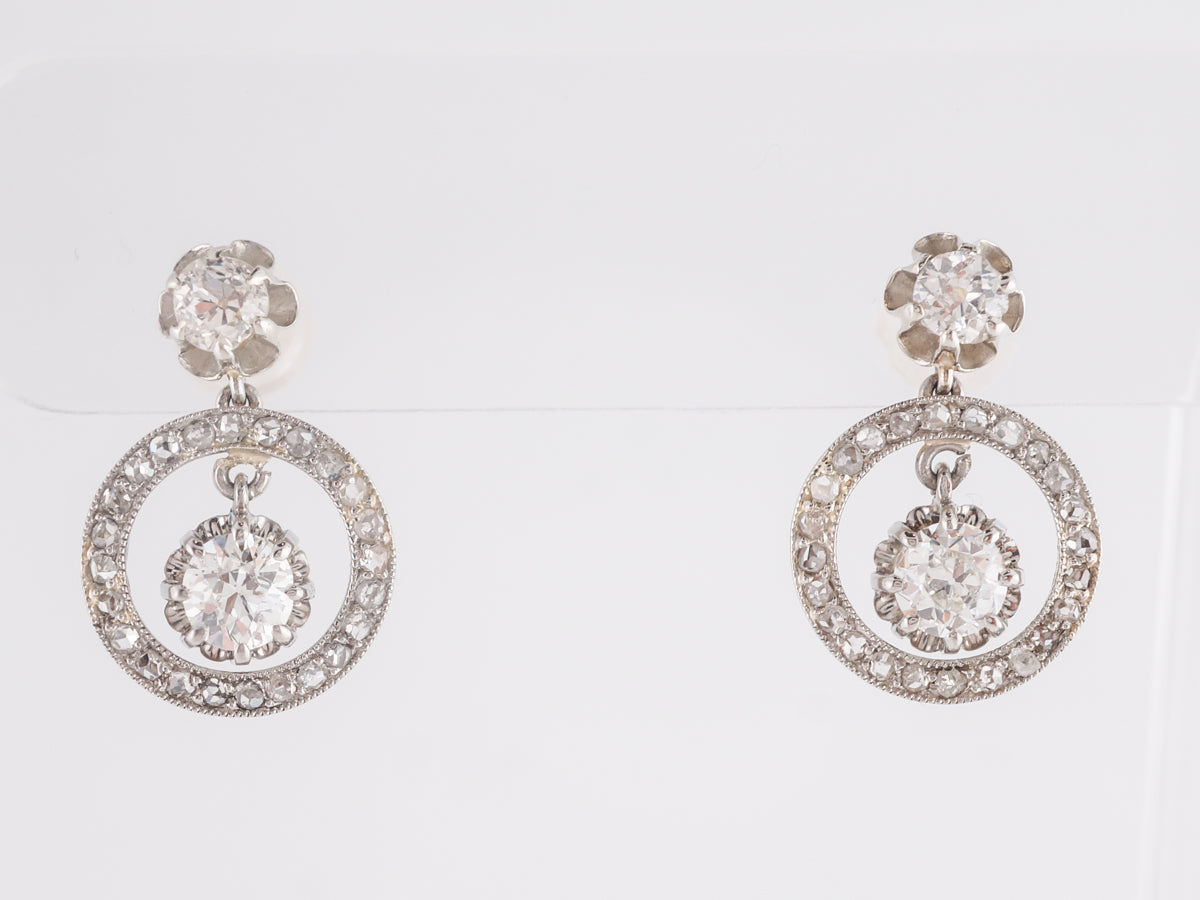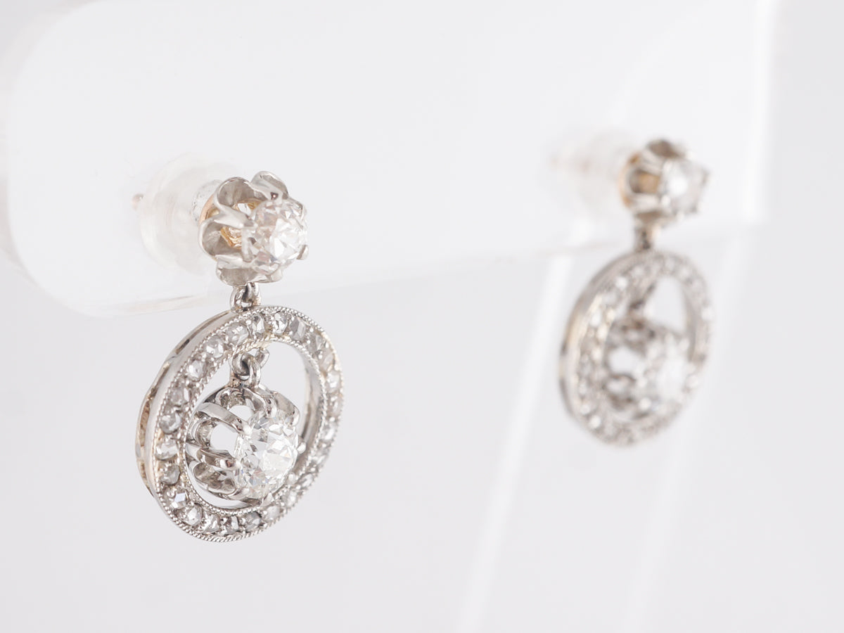 Antique Edwardian Dangle Earrings in 14k Yellow Gold and Platinum