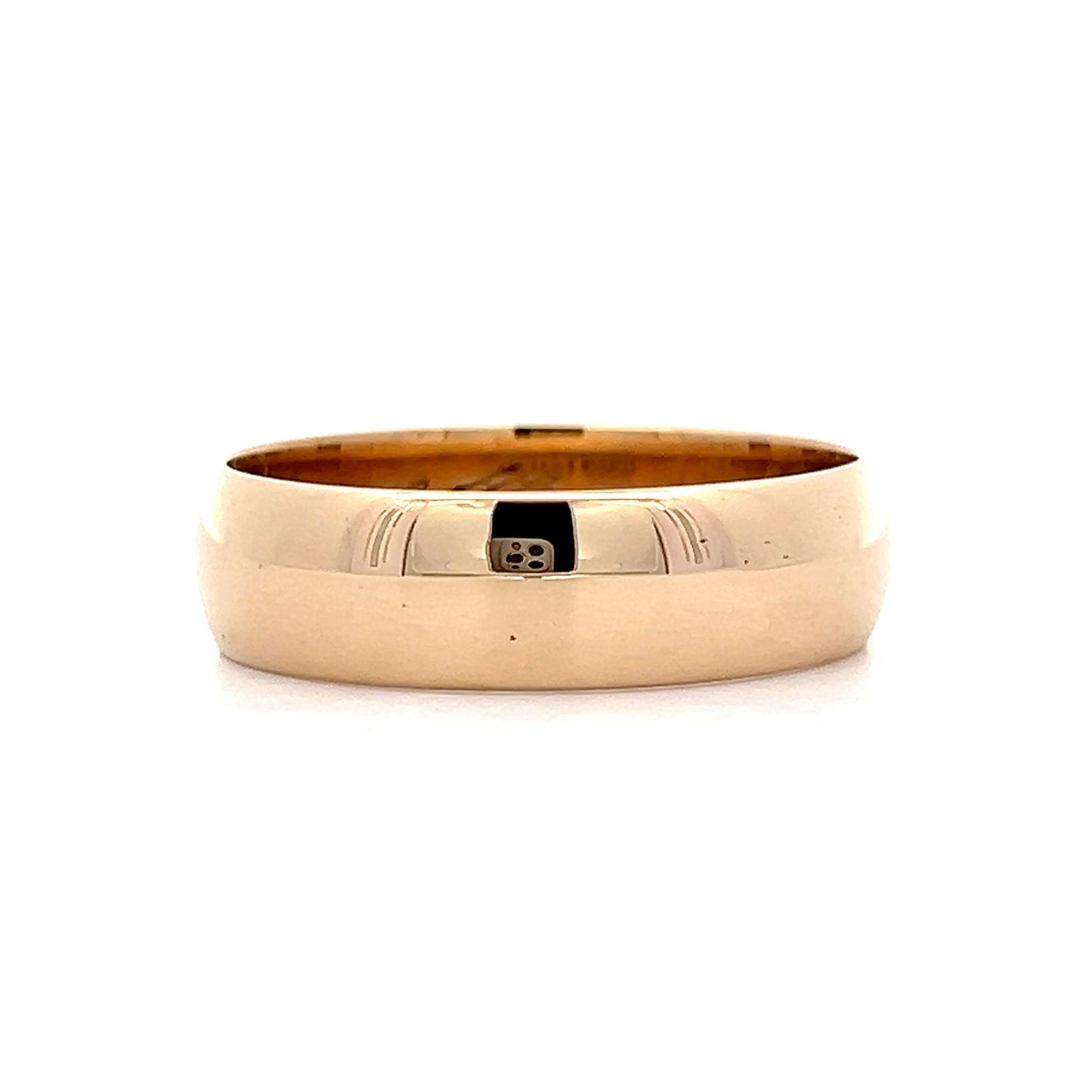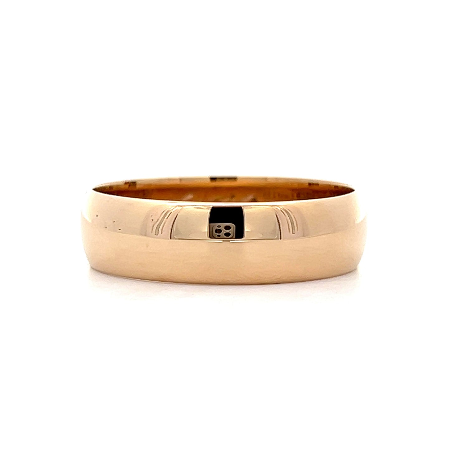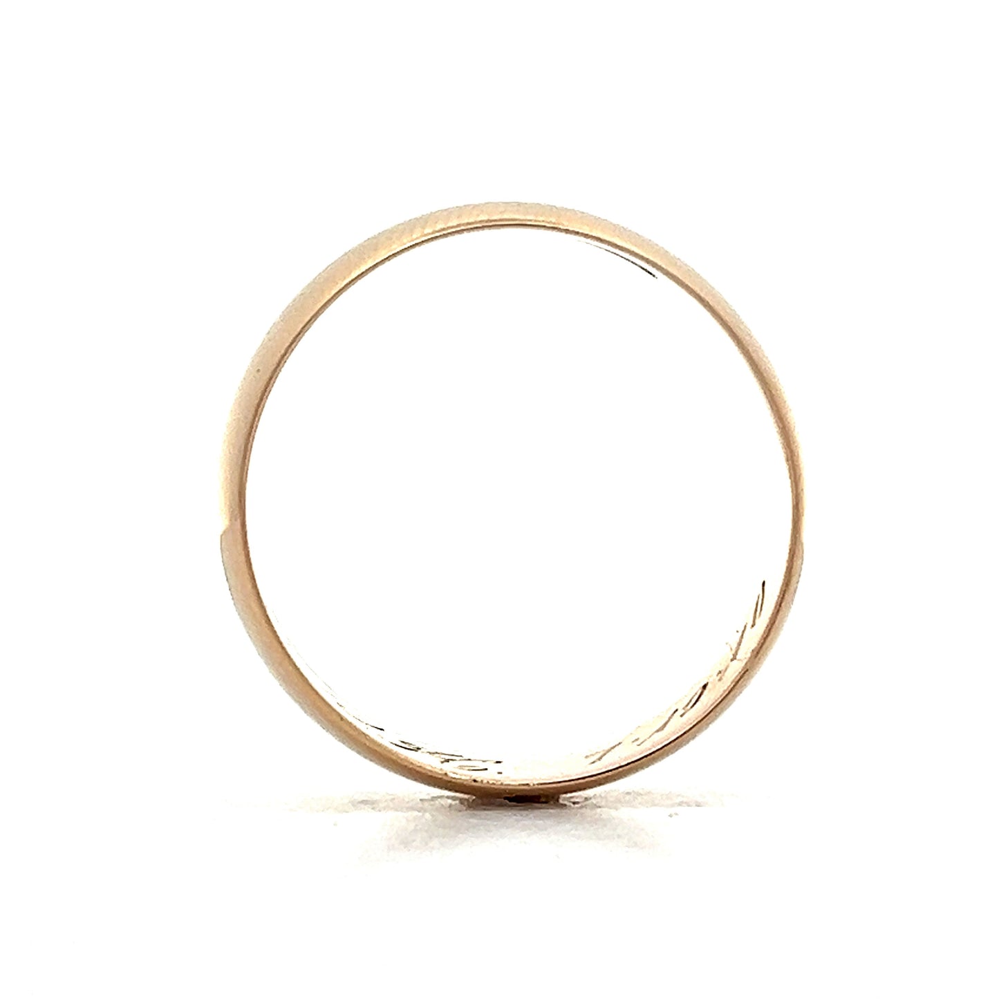 This antique Edwardian men's wedding band, crafted in 14 karat yellow gold measures 6.5 mm in width. A unique feature of this band is its original interior engraving, "A.K. to O.K. 7-12-10," adding a personal touch that reflects a story from the past.