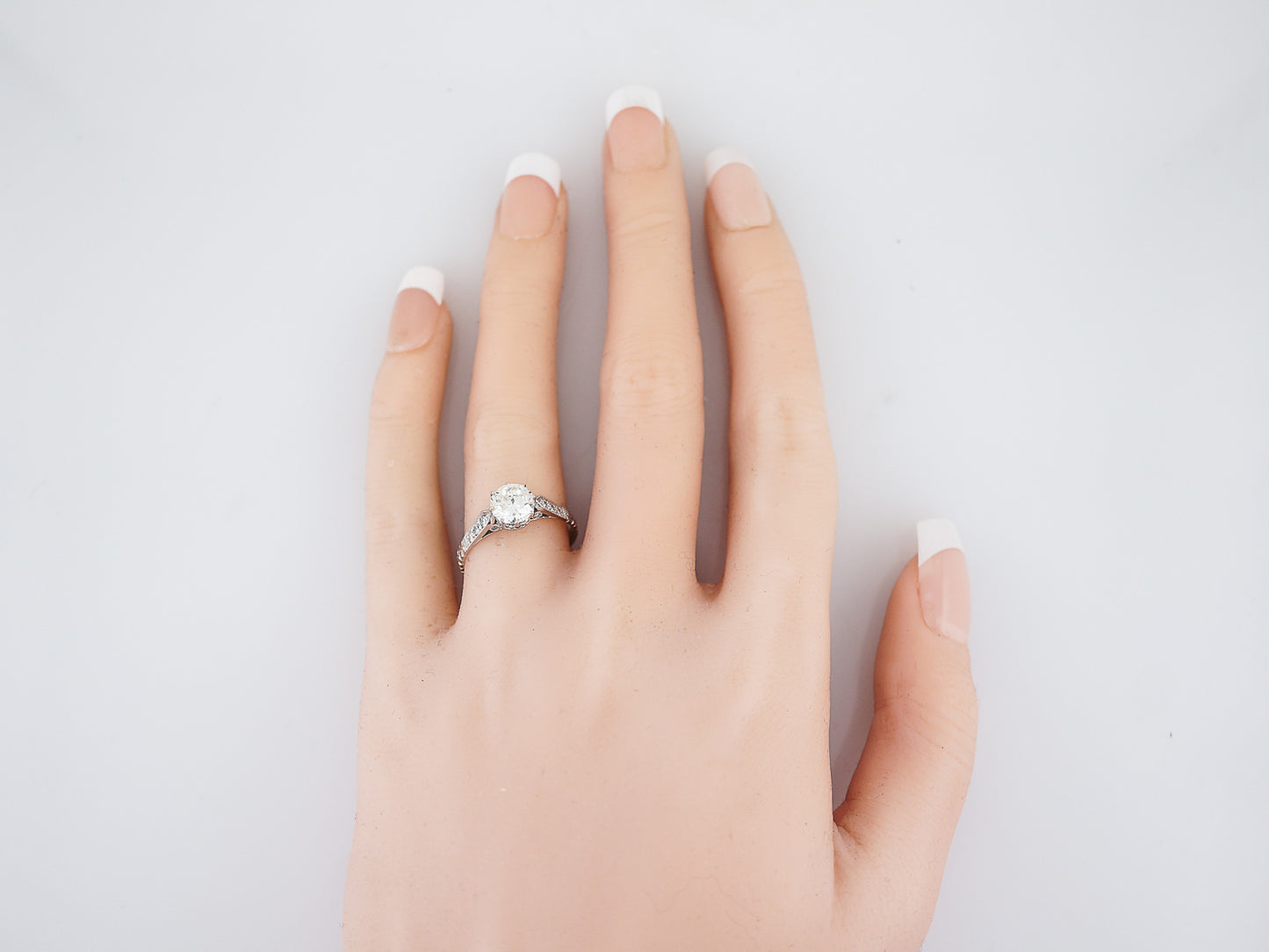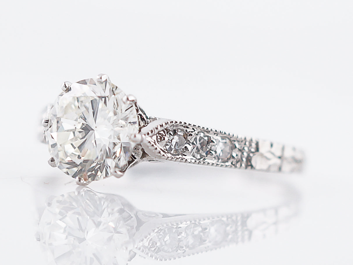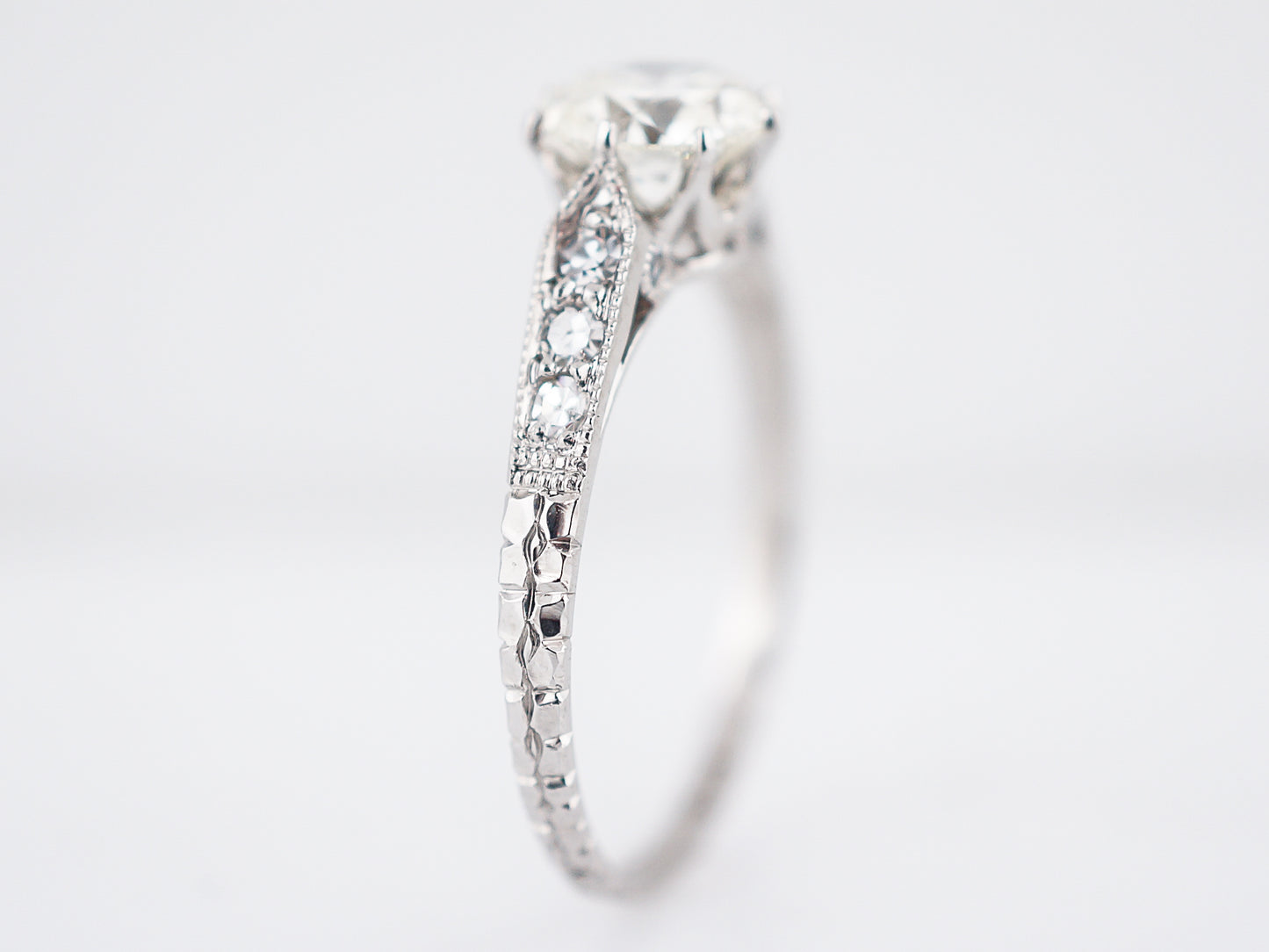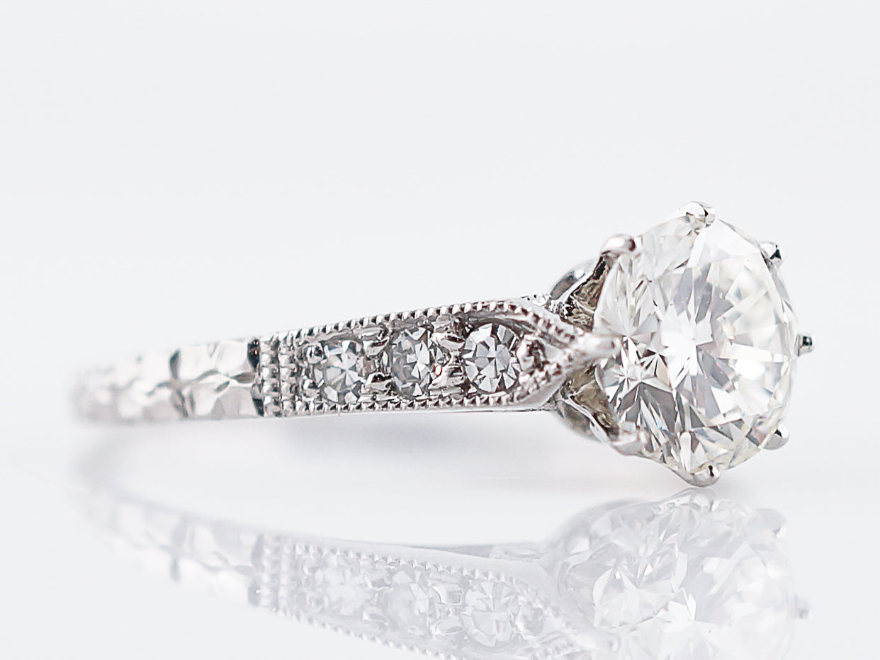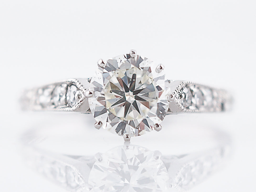 Antique Engagement Ring Art Deco 1.08 Round Brilliant Cut Diamond in 14k White Gold
