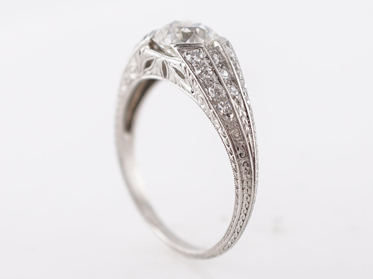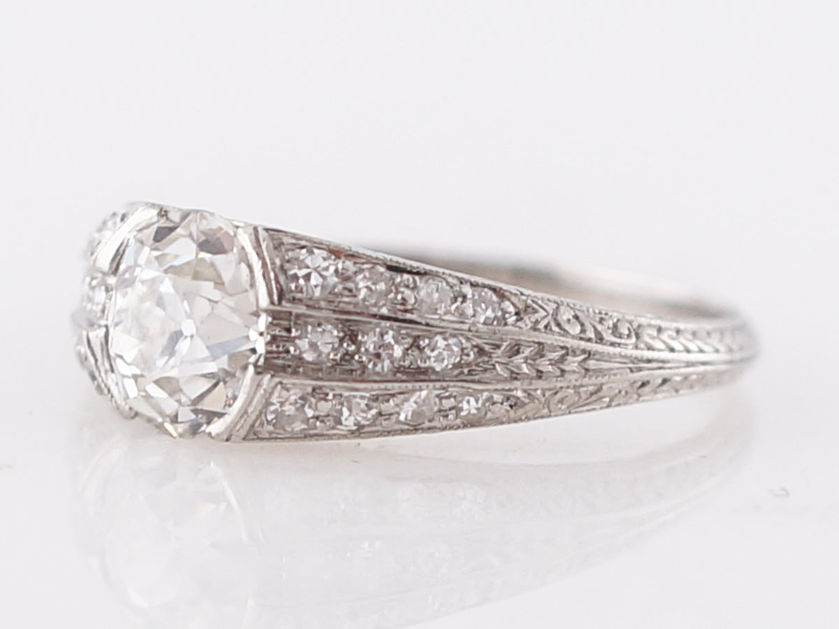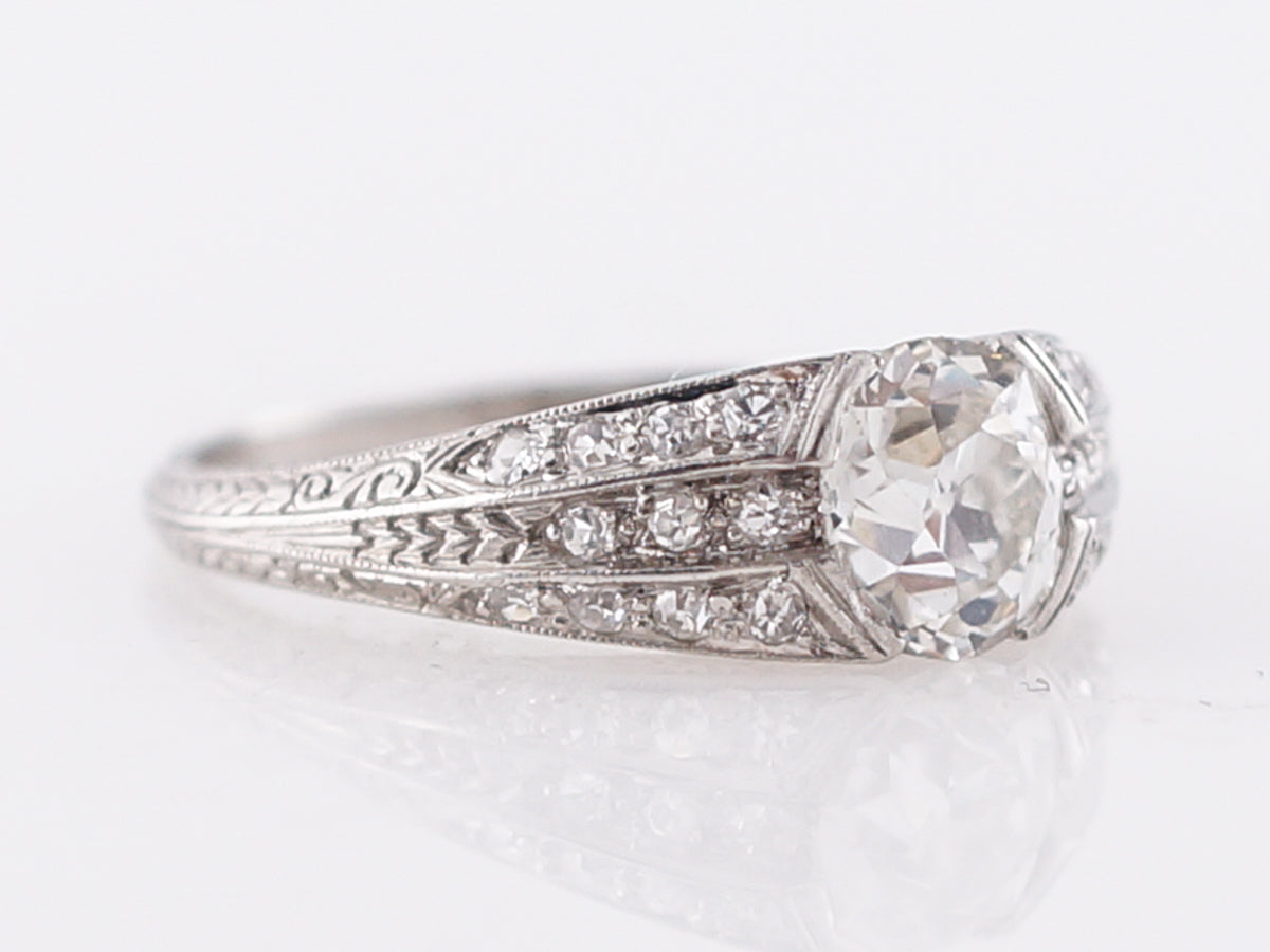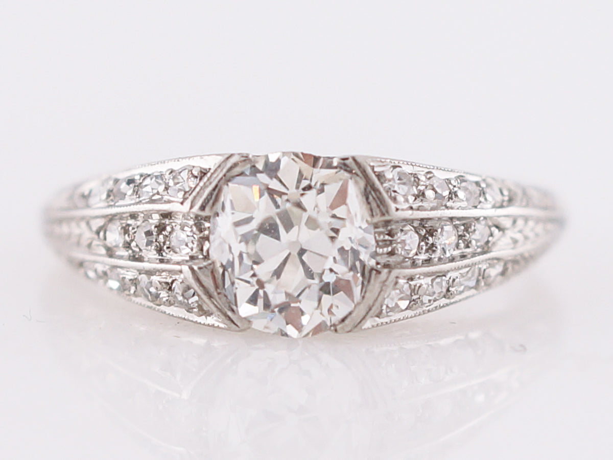 Antique Engagement Ring Art Deco 1.13 Cushion Cut Diamond in Platinum