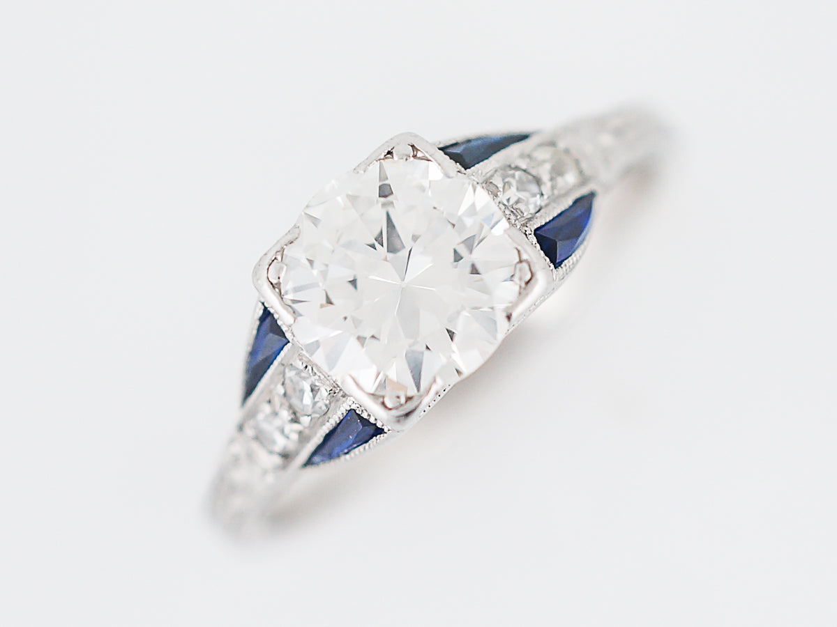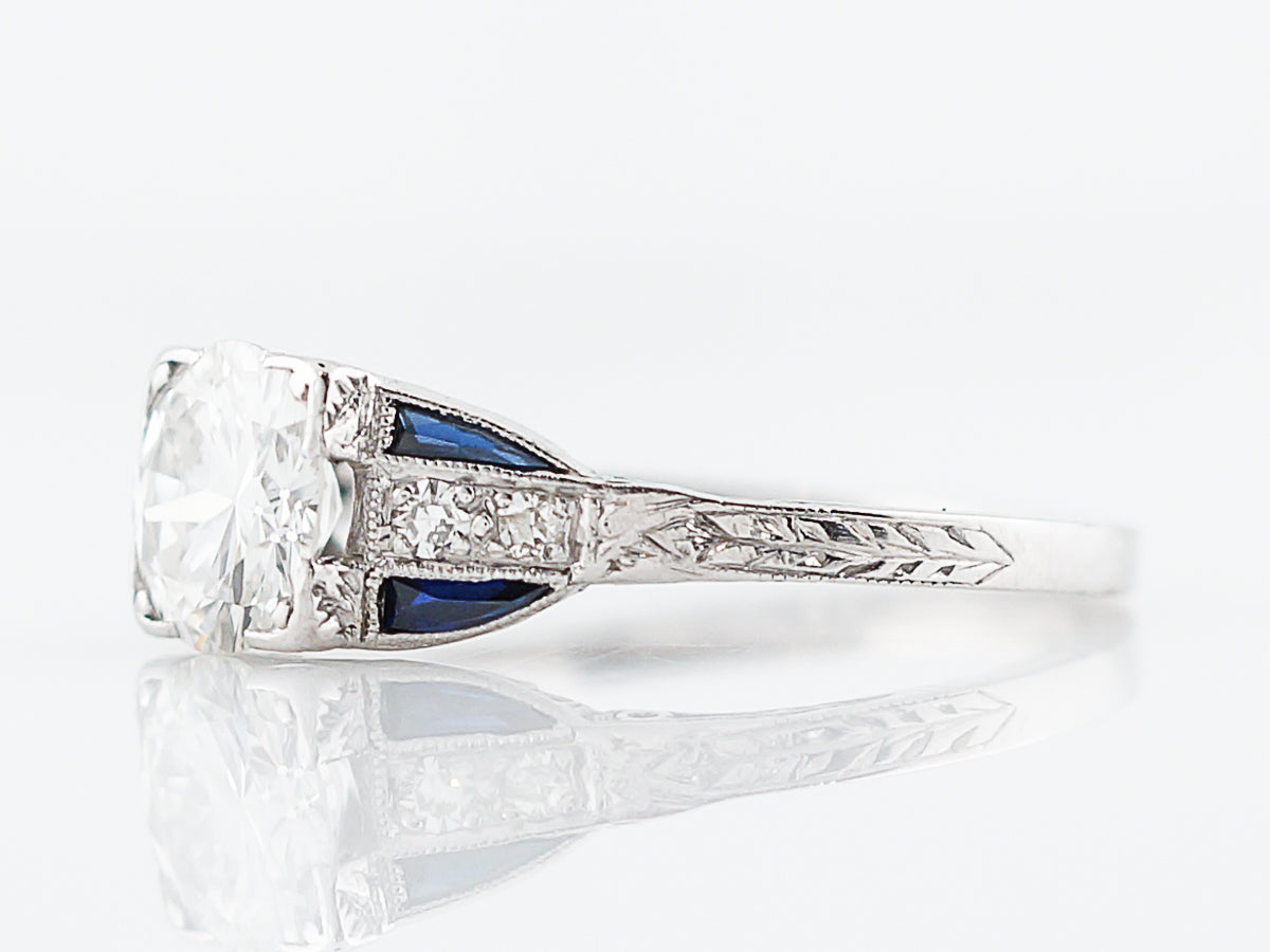 Antique Engagement Ring Art Deco 1.22 Round Brilliant Cut Diamond in Platinum