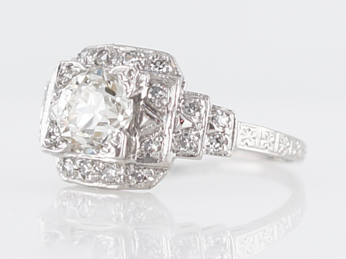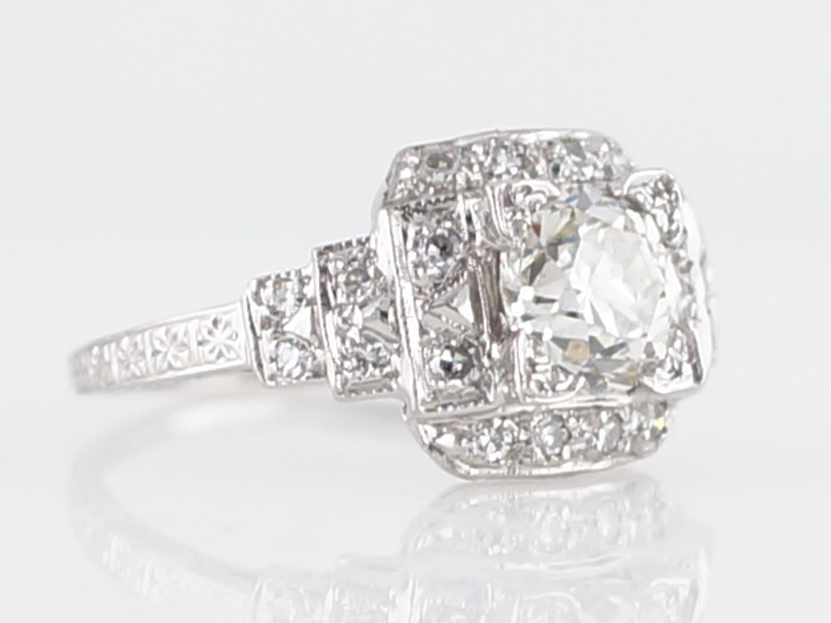 Antique Engagement Ring Art Deco 1.28 Old European Cut Diamond in Platinum