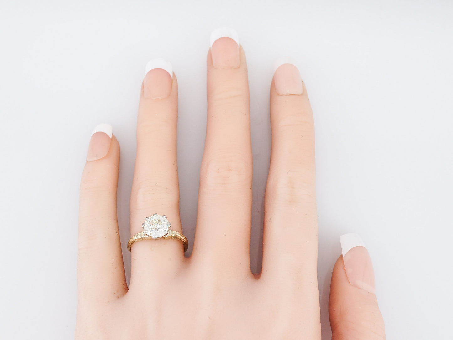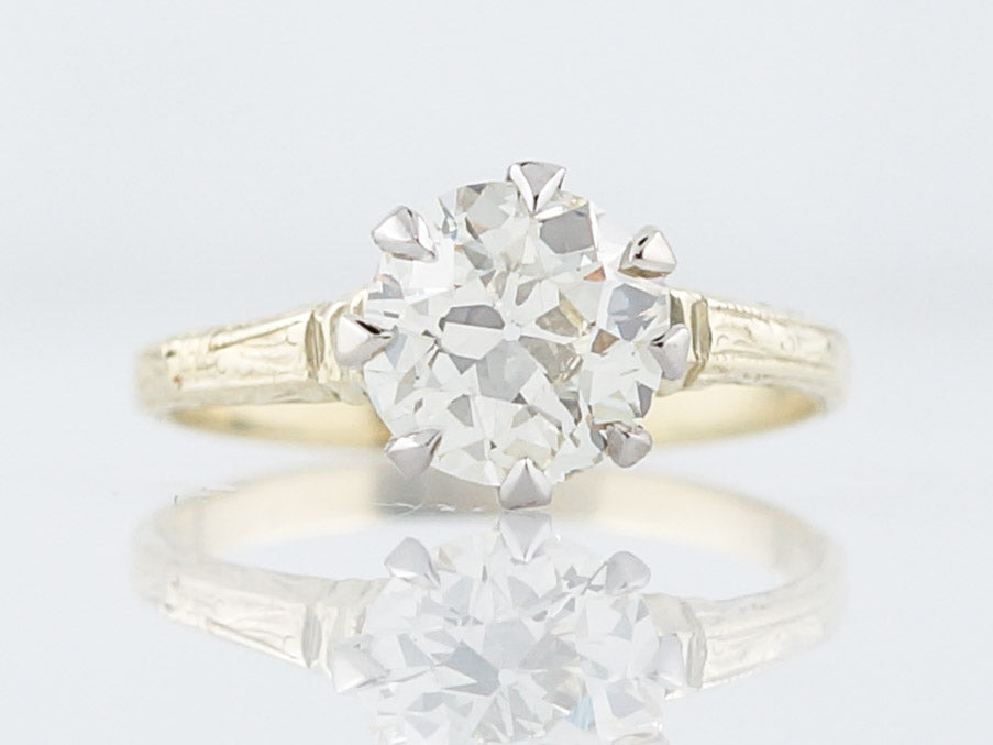 Antique Engagement Ring Art Deco 1.44 Old European Cut Diamond in 14k Yellow Gold