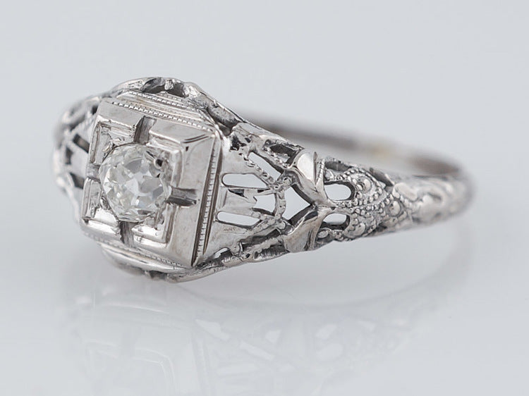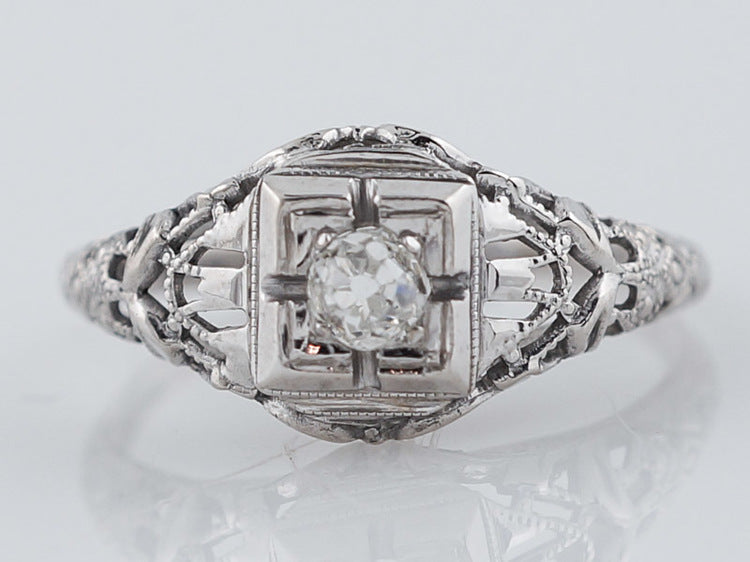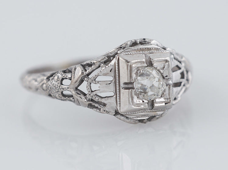 Antique Engagement Ring Art Deco .18ct Old Mine Cut Diamond in Vintage 18k White Gold
