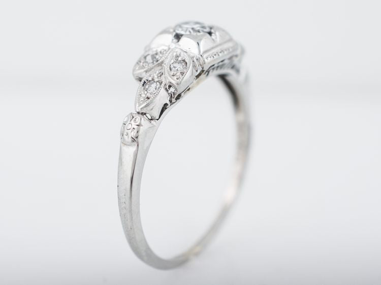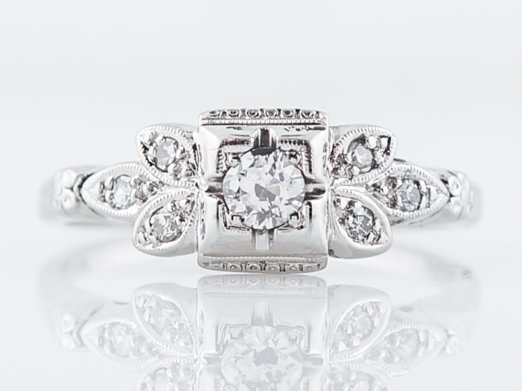 Antique Engagement Ring Art Deco .20 Old European Cut Diamond in 18k White Gold