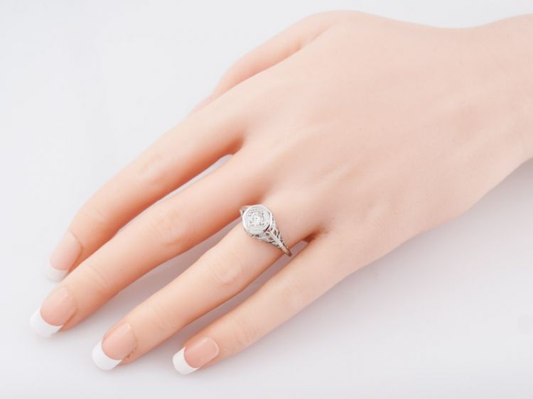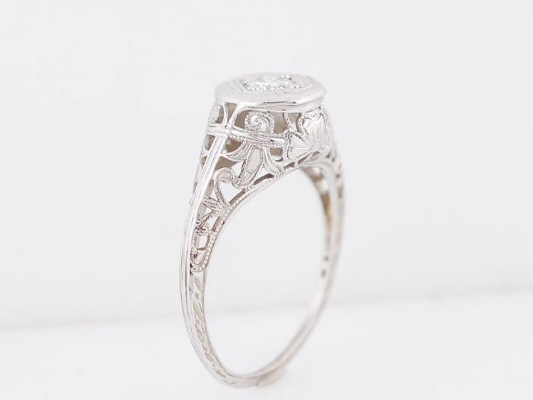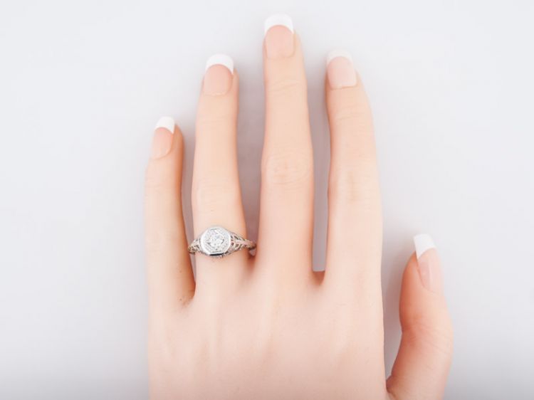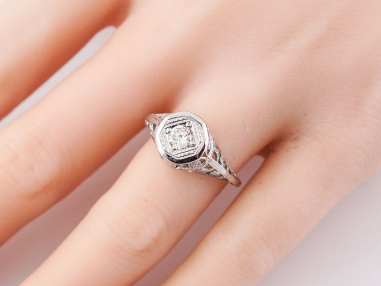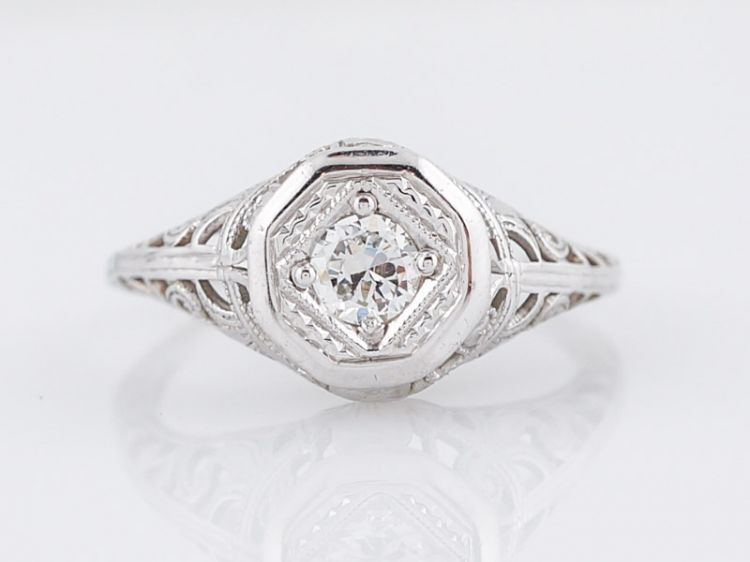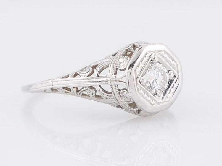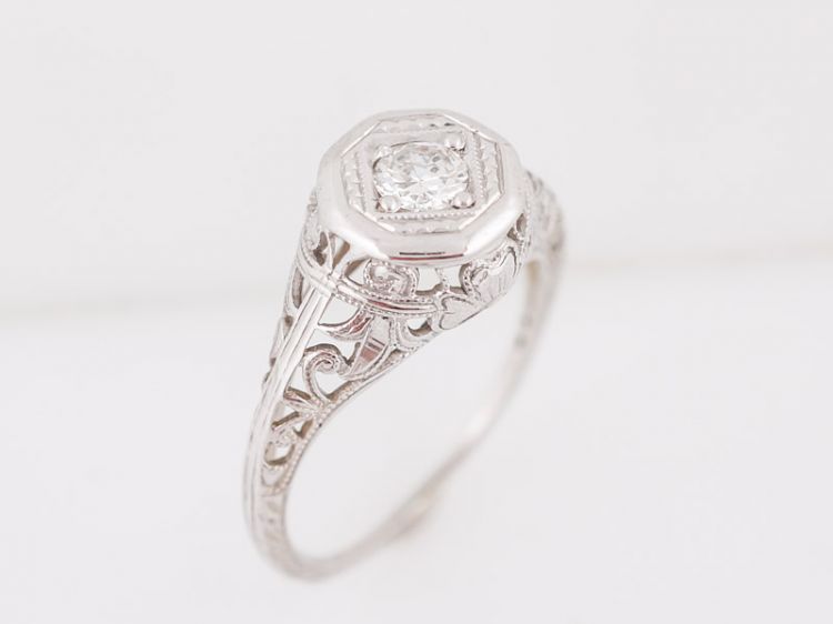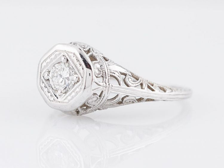 Antique Engagement Ring Art Deco .23 Old European Cut Diamond in 18k White Gold