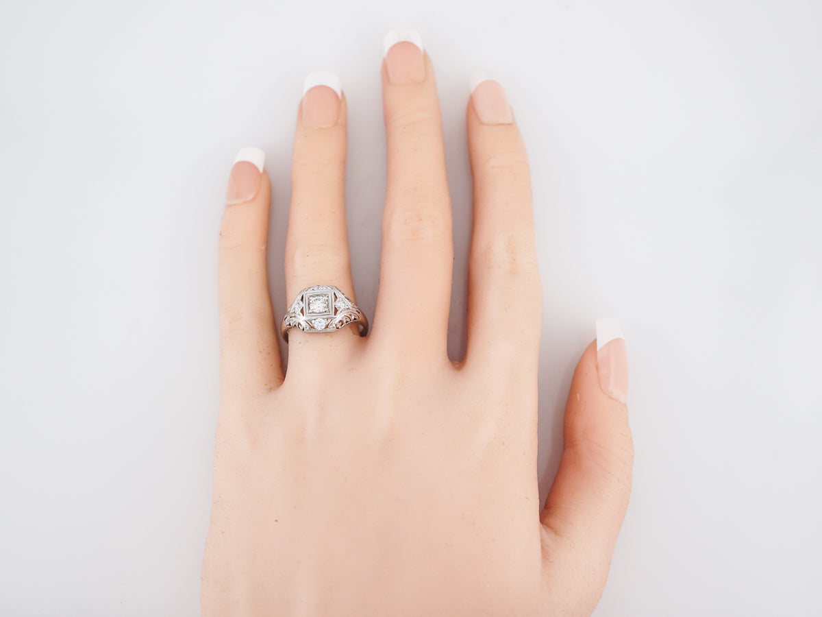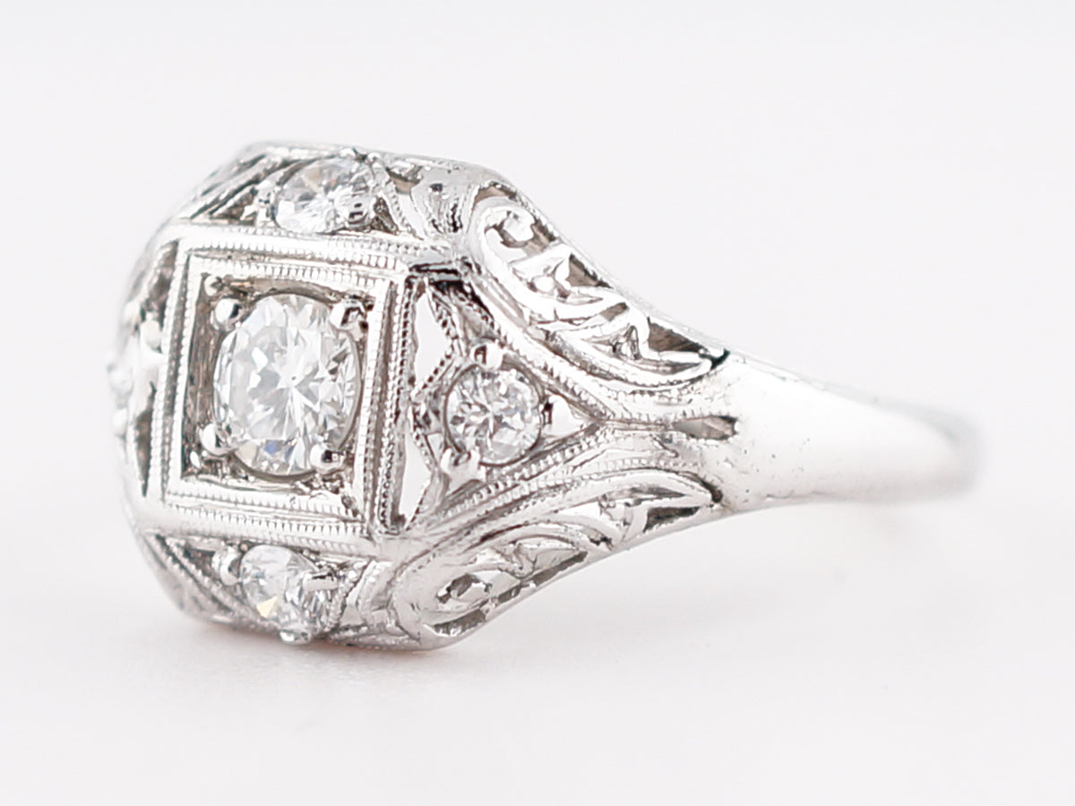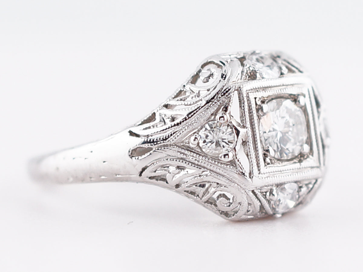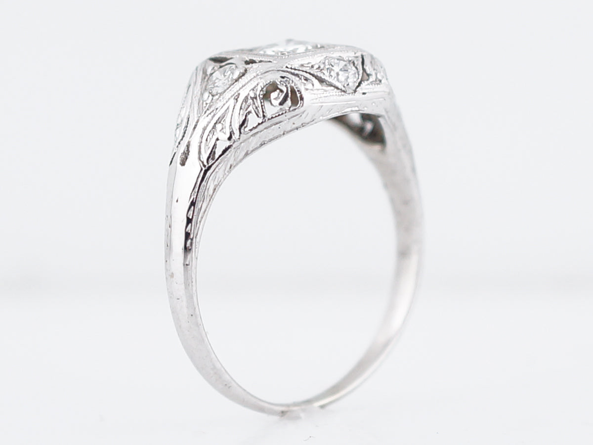 Antique Engagement Ring Art Deco .30 Round Brilliant Cut Diamond in 18k White Gold & Platinum