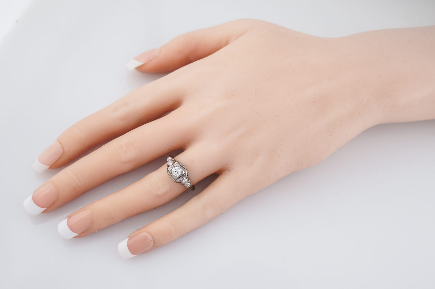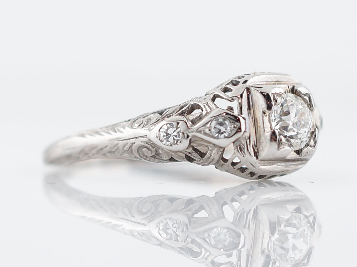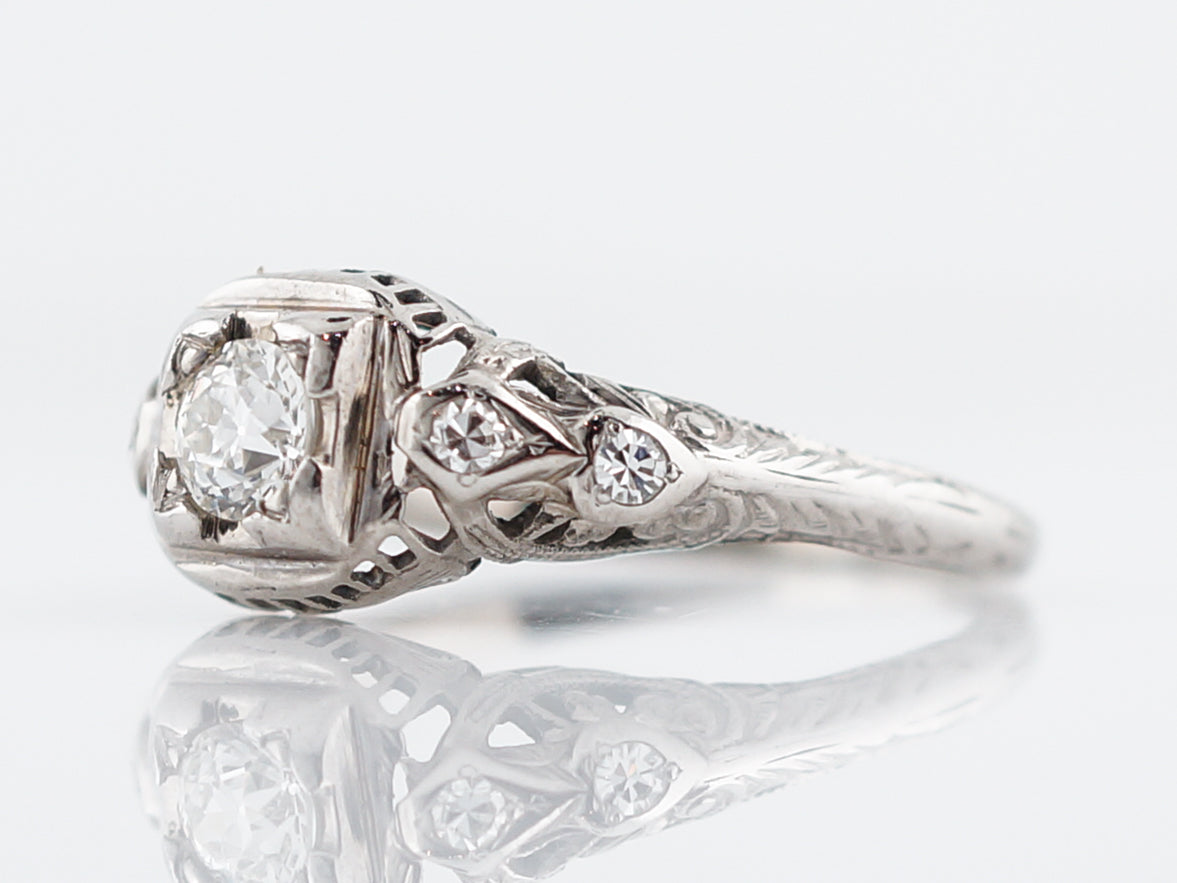 Antique Engagement Ring Art Deco .31 Transitional Cut Diamond in 18k White Gold