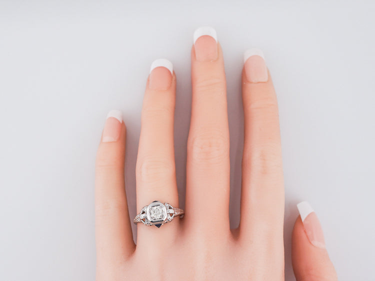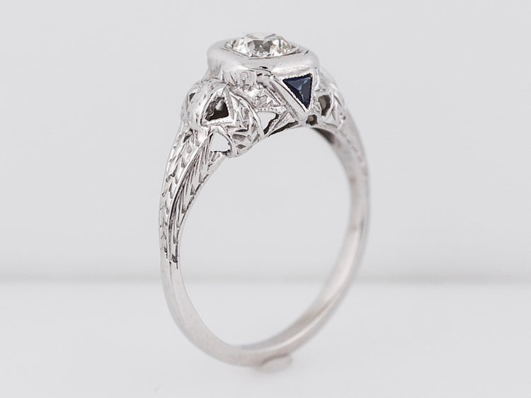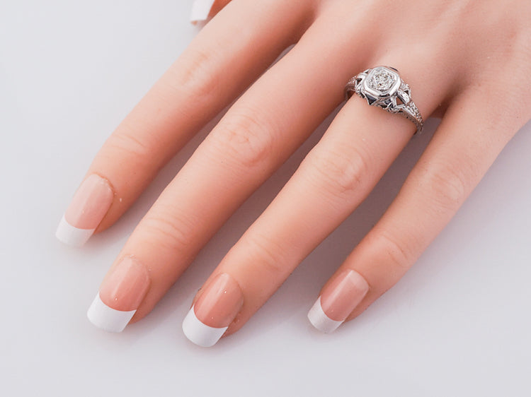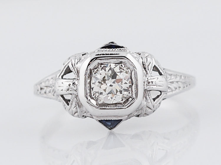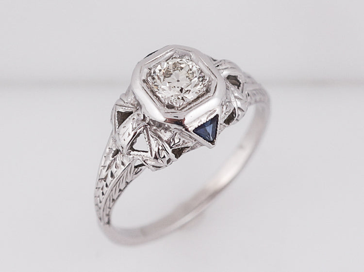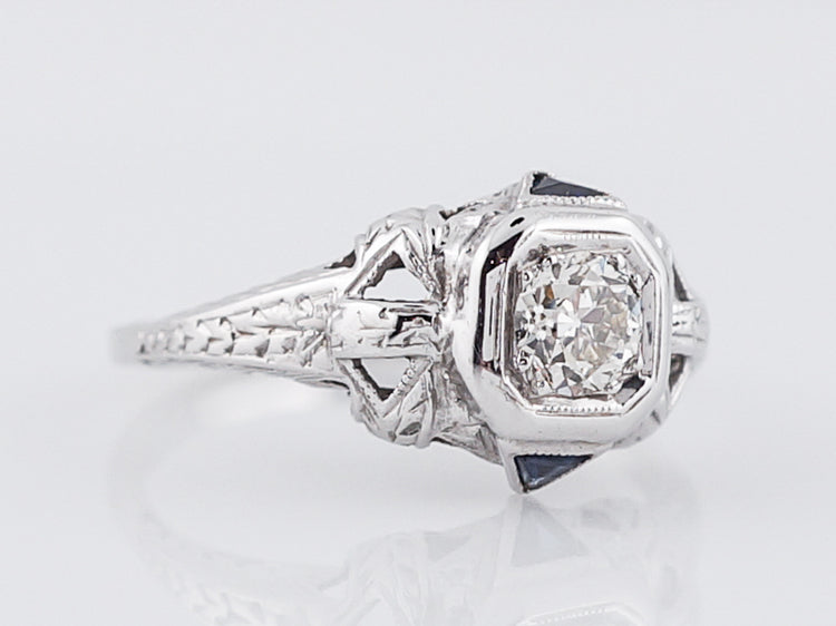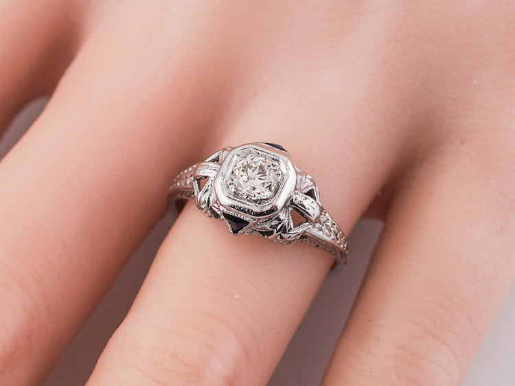 Antique Engagement Ring Art Deco .36 Old European Cut Diamond in 18k White Gold