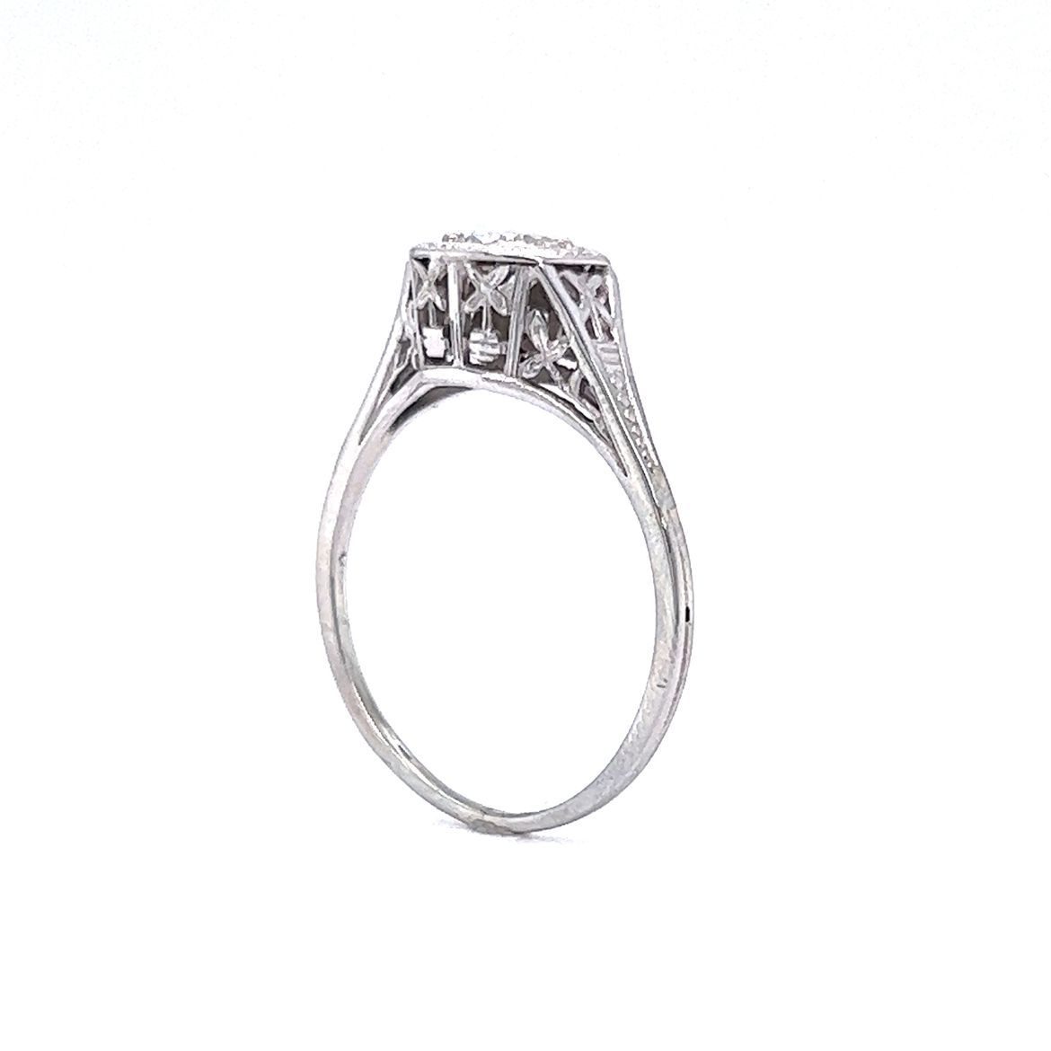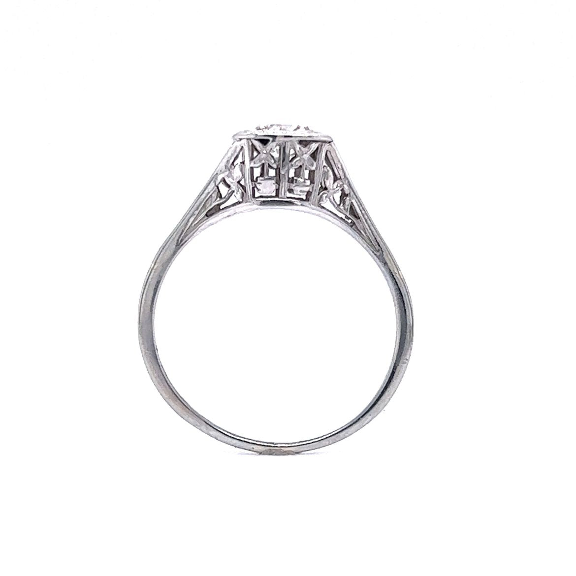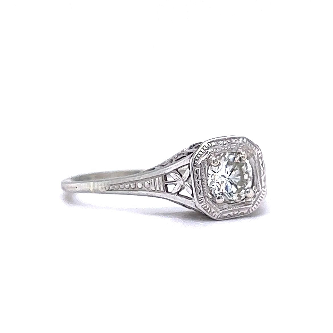 Engagement Ring Art Deco .44 Old European Cut Diamond 18K White Gold