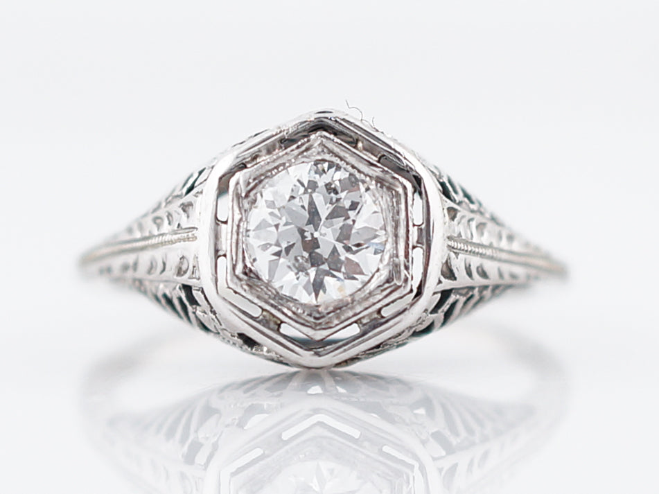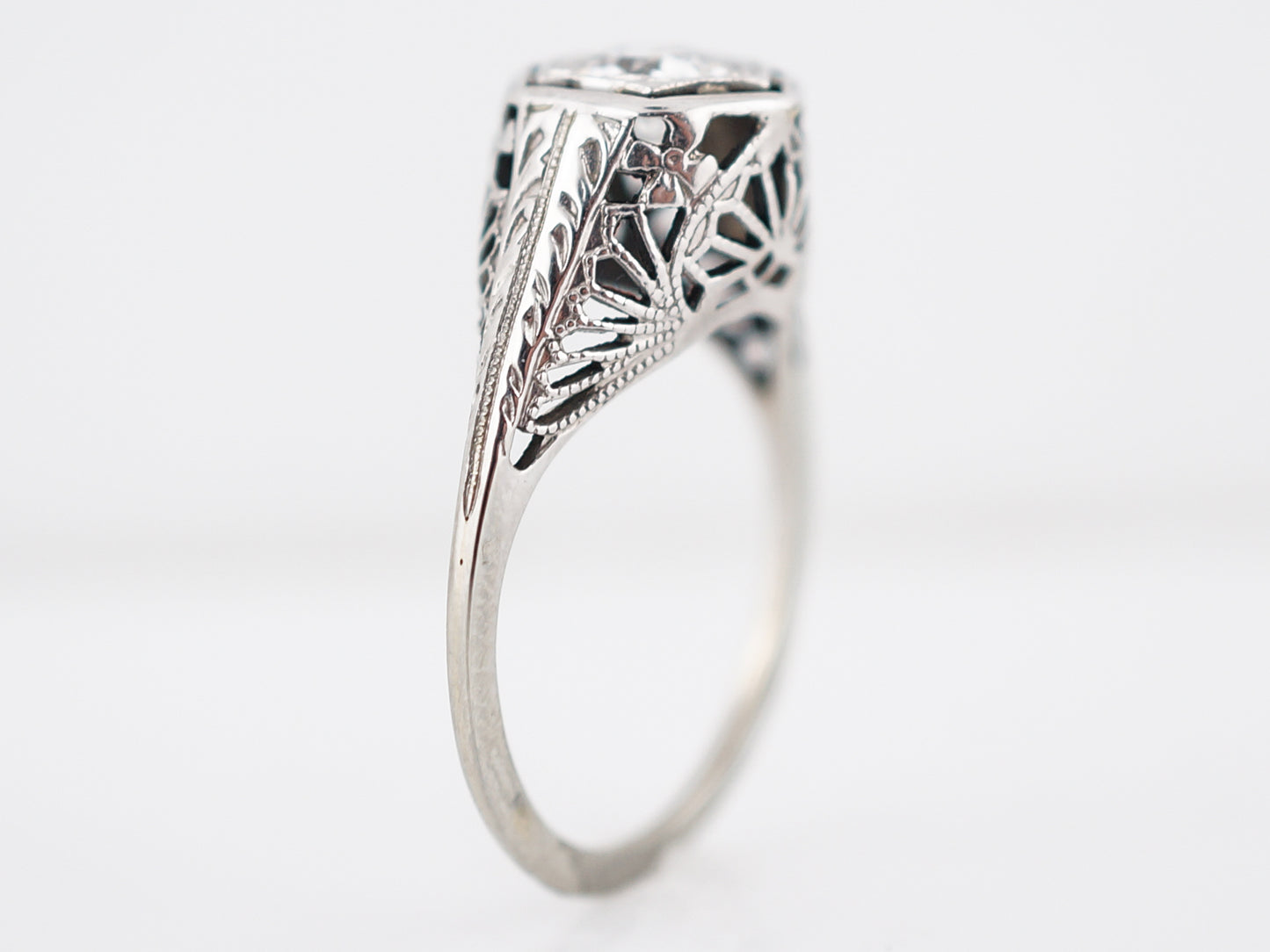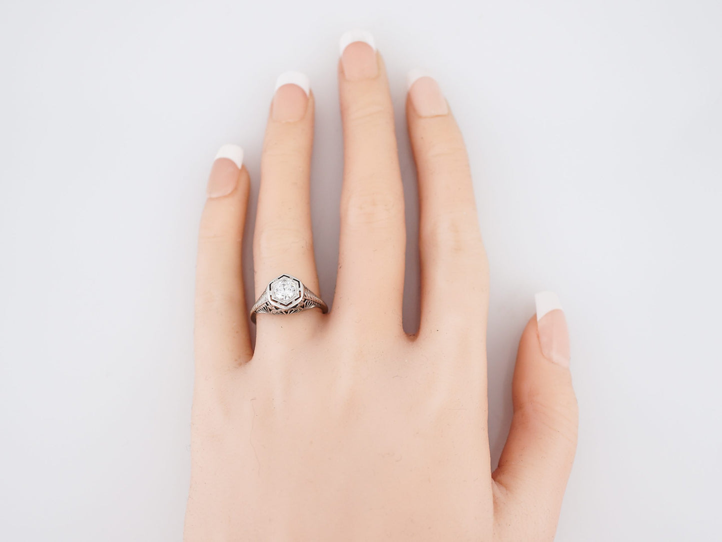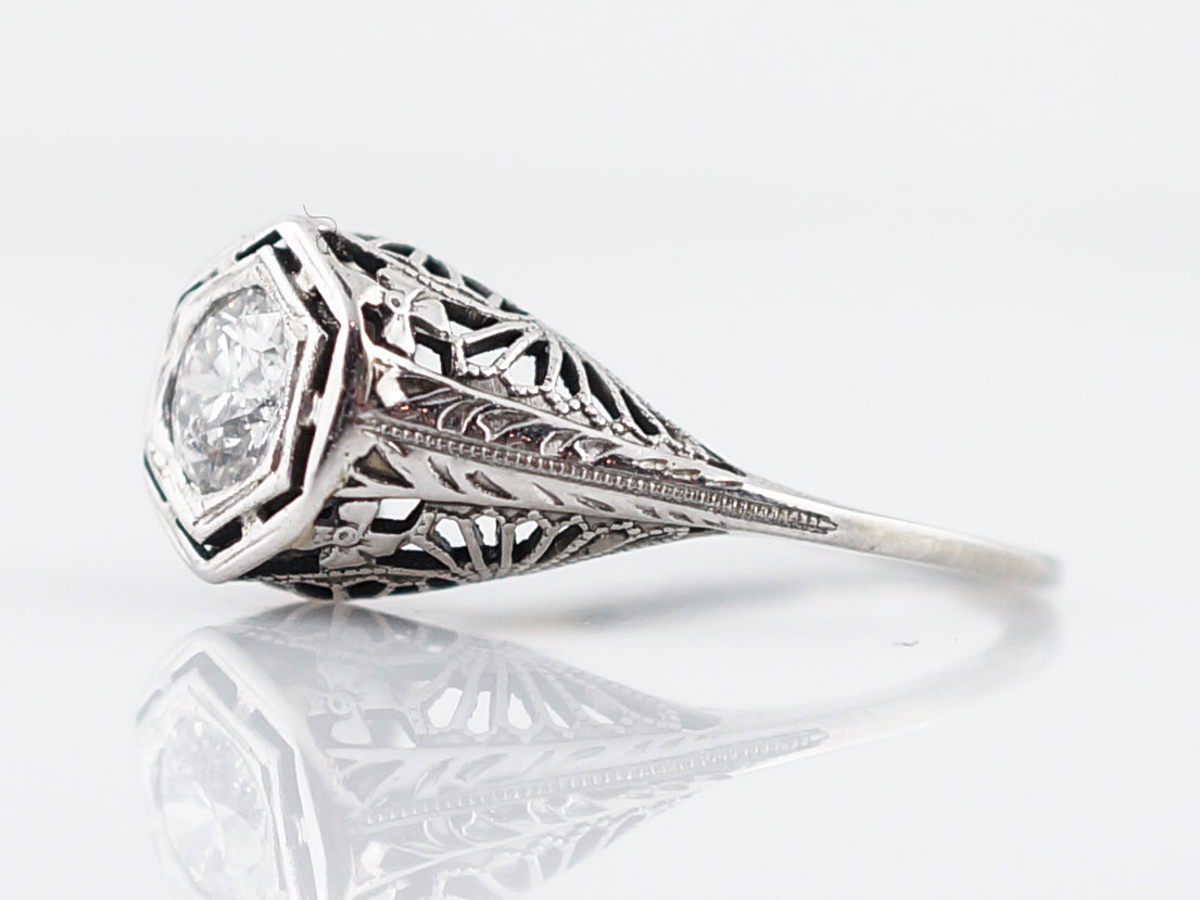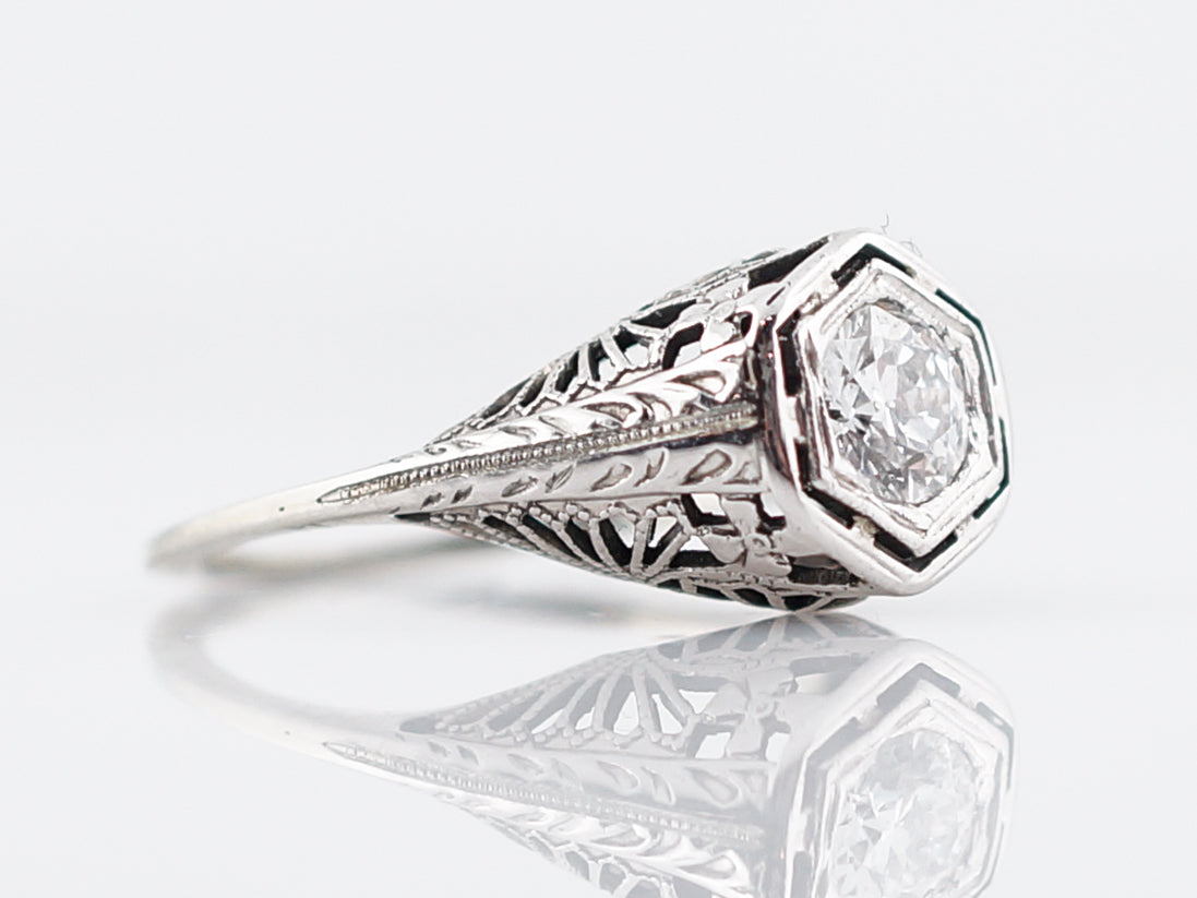 Antique Engagement Ring Art Deco .49 Old European Cut Diamond in 18k White Gold