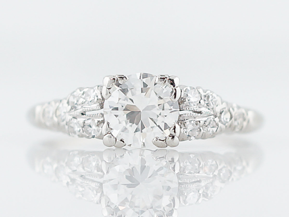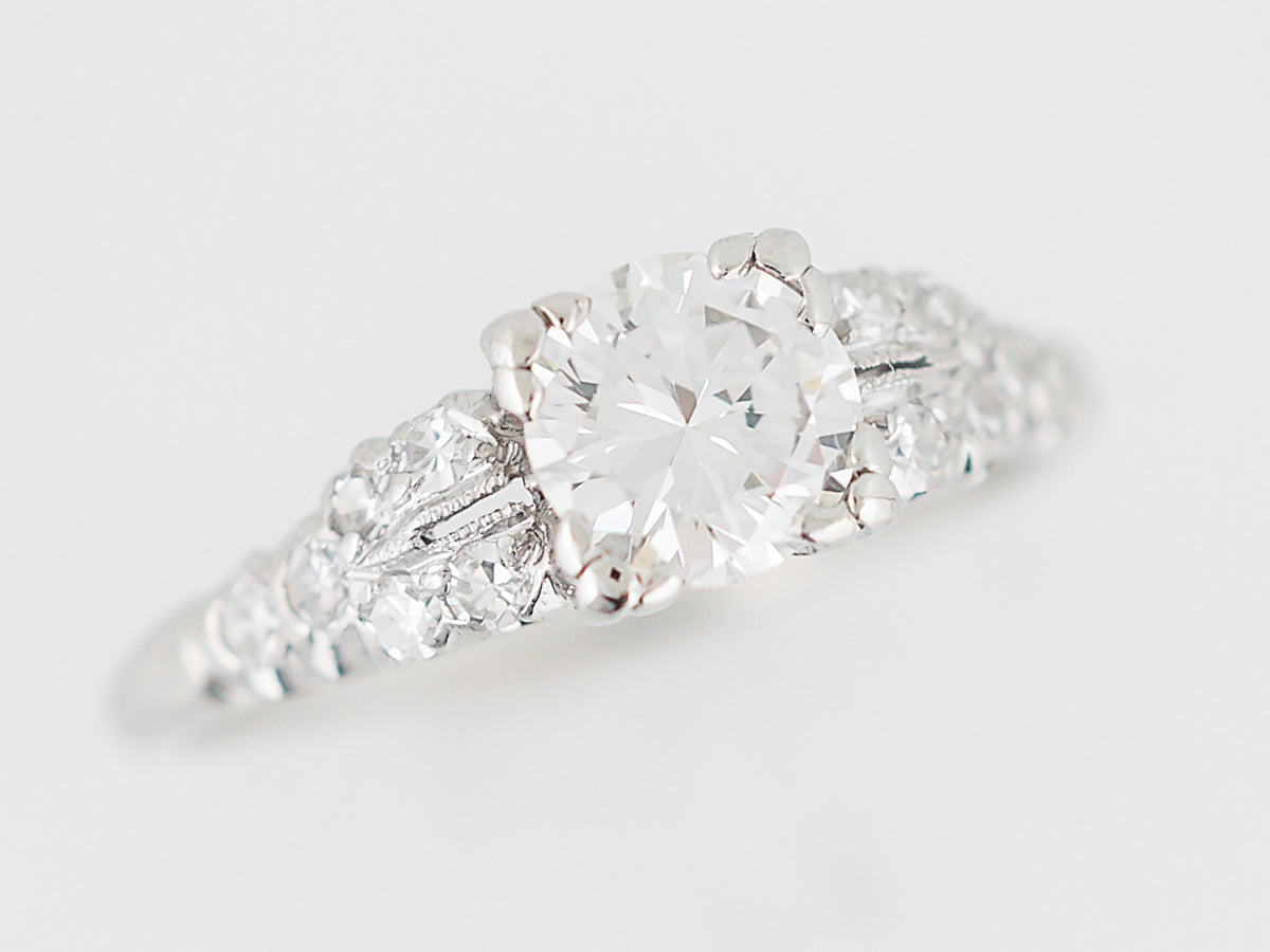 Antique Engagement Ring Art Deco .52 Round Brilliant Cut Diamond in Platinum