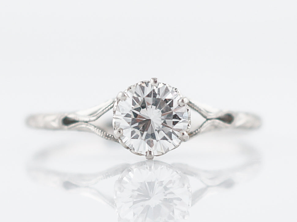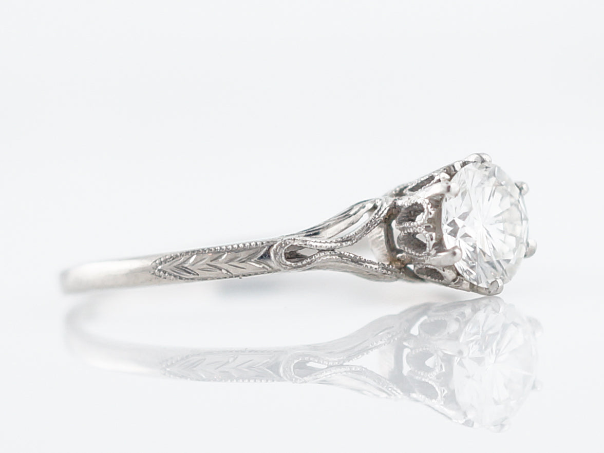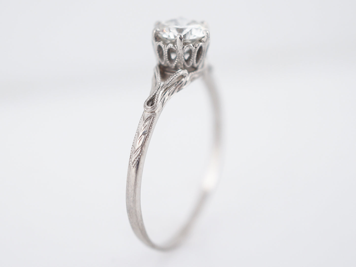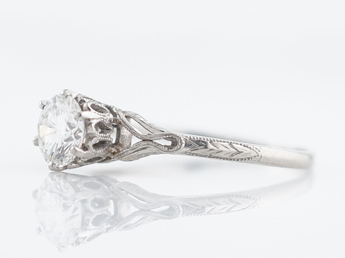 Antique Engagement Ring Art Deco .53 Round Brilliant Cut Diamond in Platinum