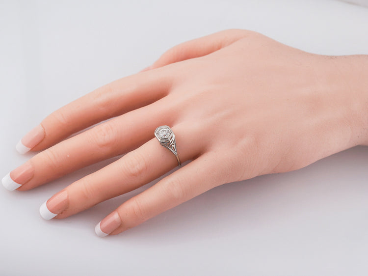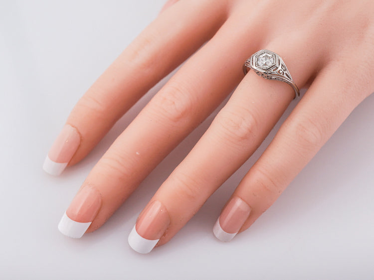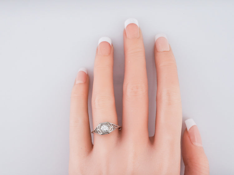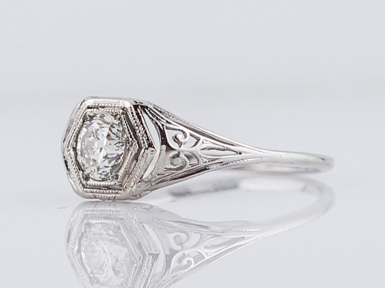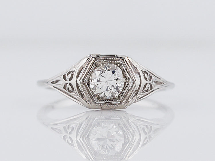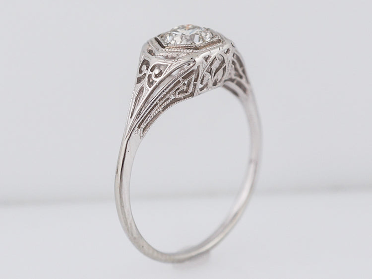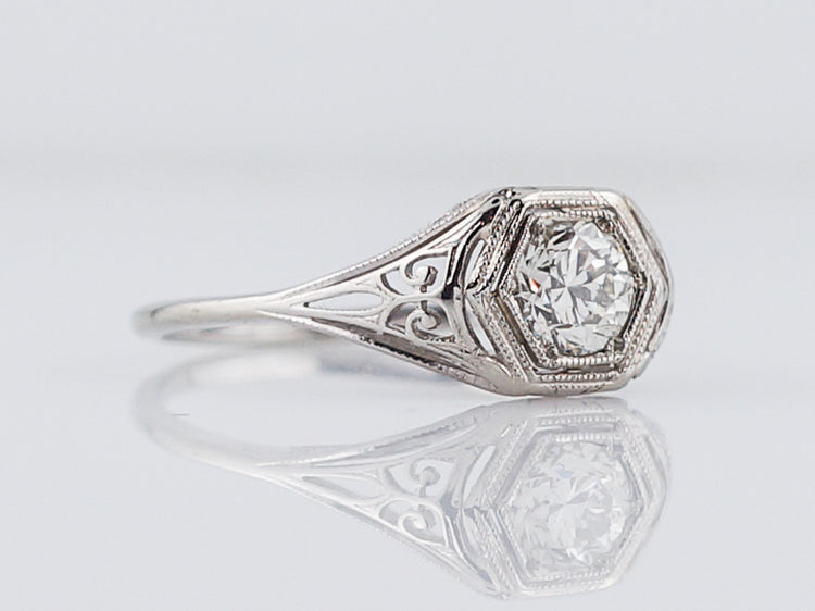 Antique Engagement Ring Art Deco .54 Old European Cut Diamond in 18k White Gold