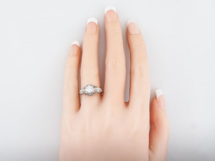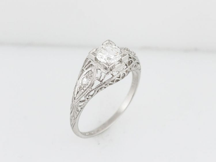 Antique Engagement Ring Art Deco .55 Old European Cut Diamond in Platinum