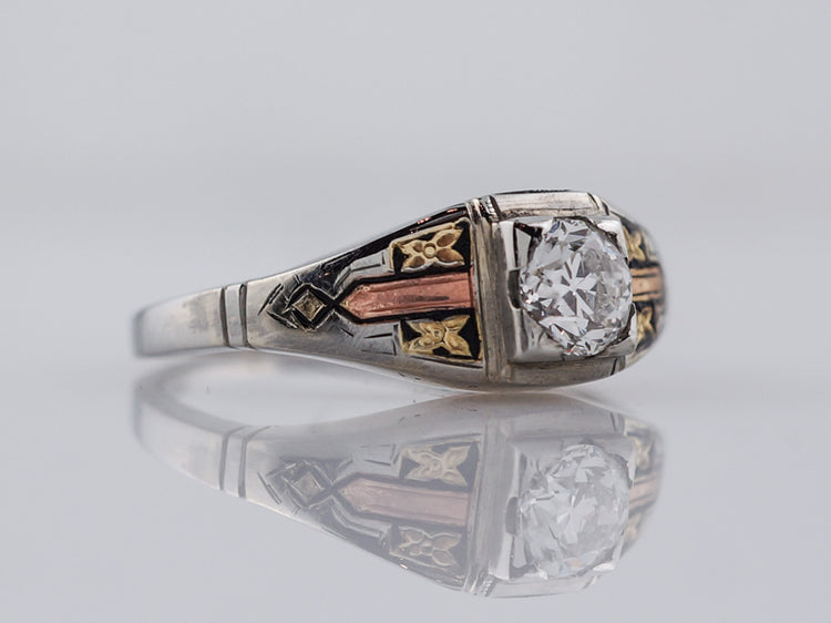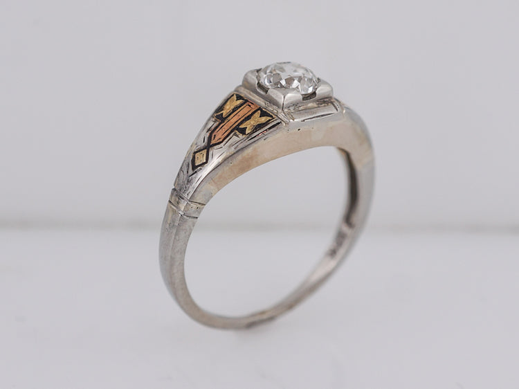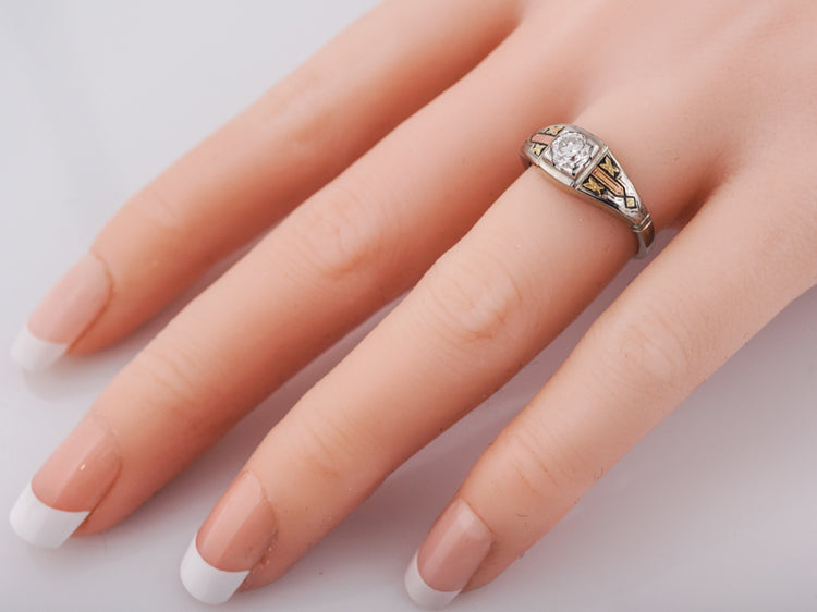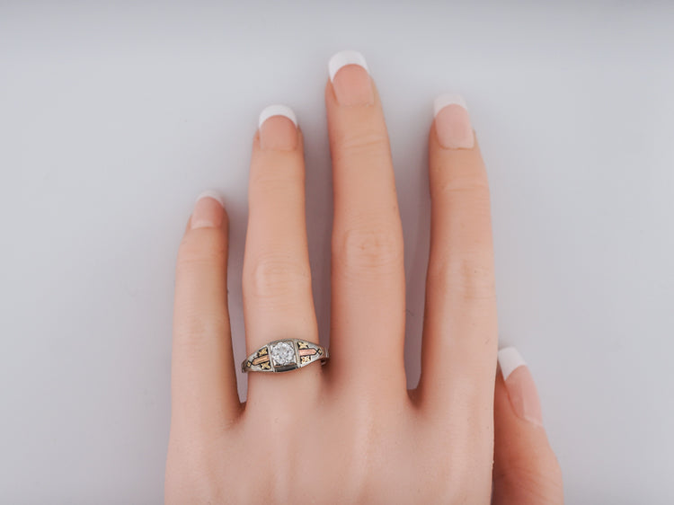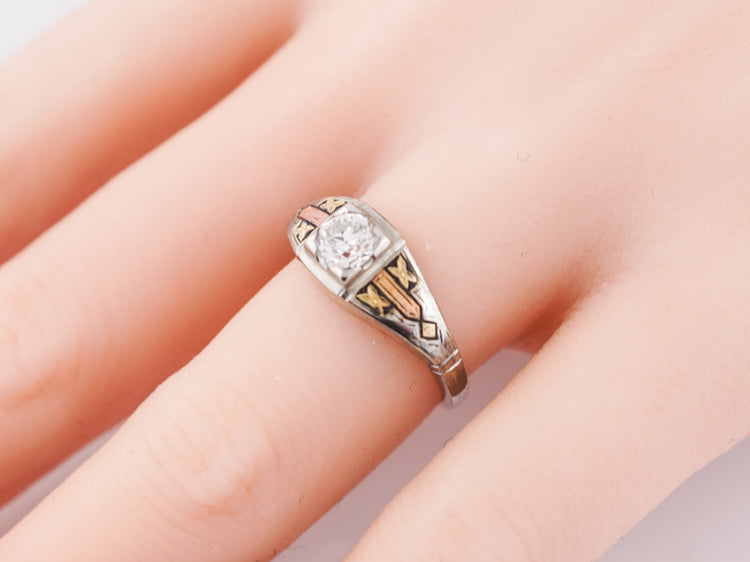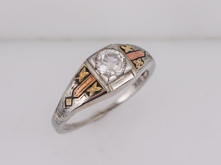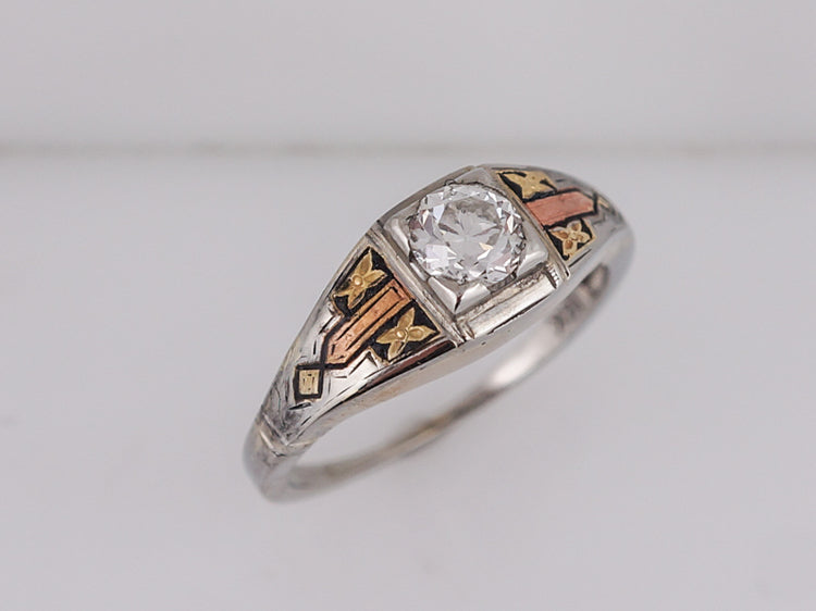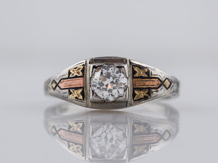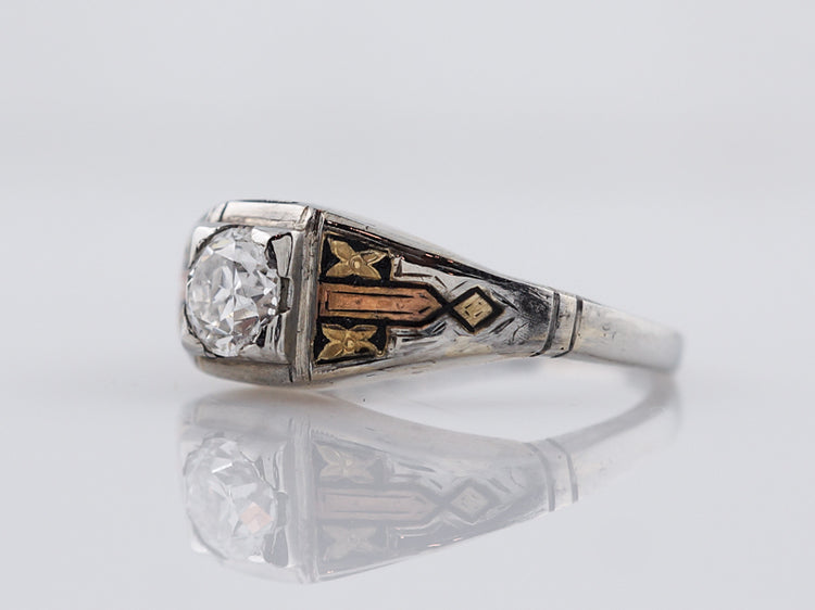Antique Engagement Ring Art Deco .58ct Old European Cut Diamond in 18k Yellow, White & Rose Gold
