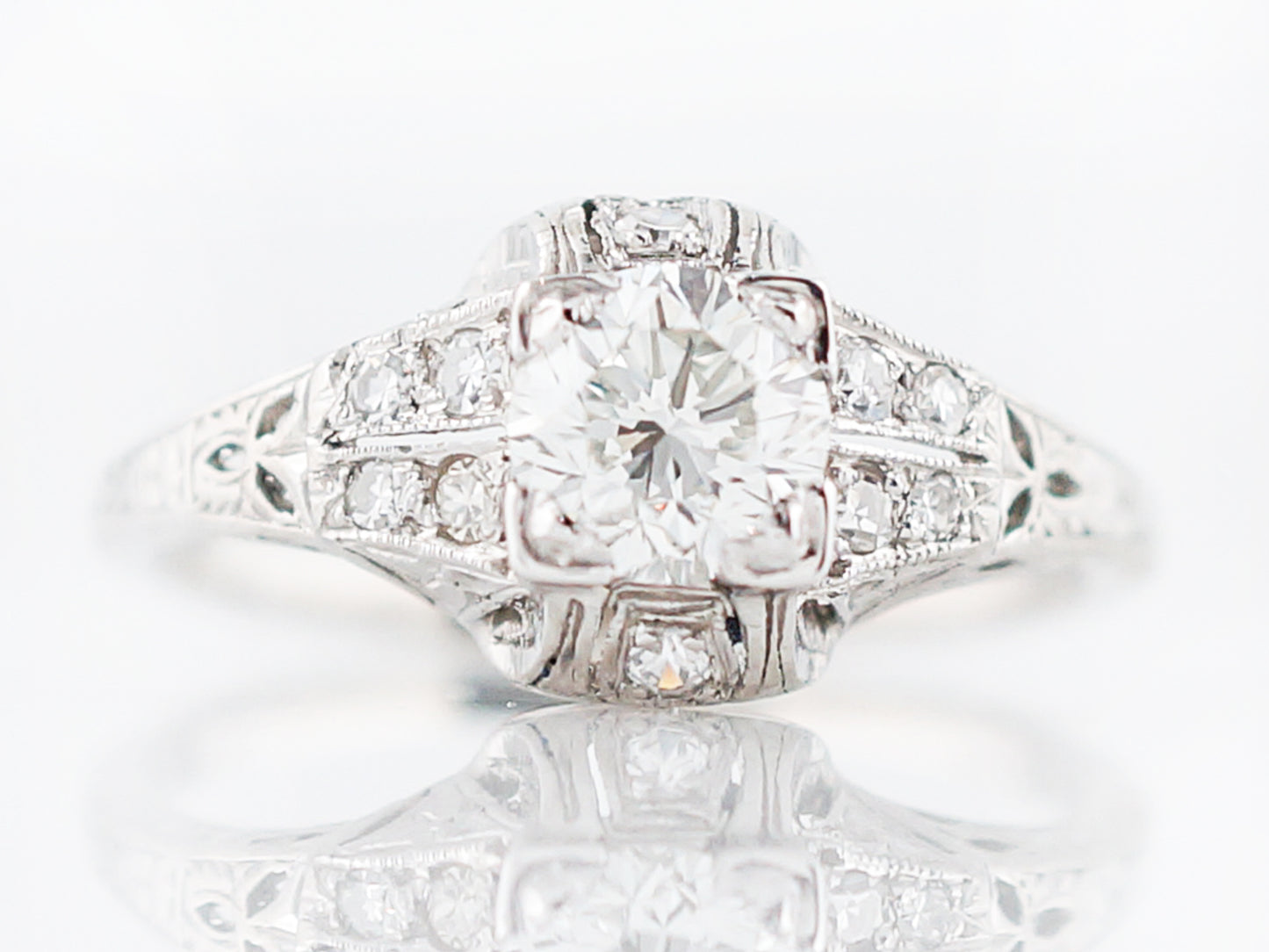 Antique Engagement Ring Art Deco .59 Old European Cut Diamond in Platinum
