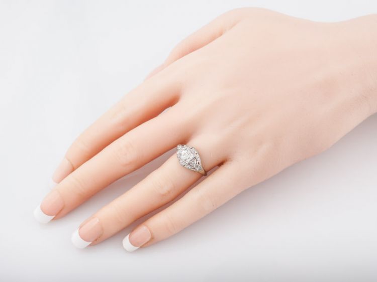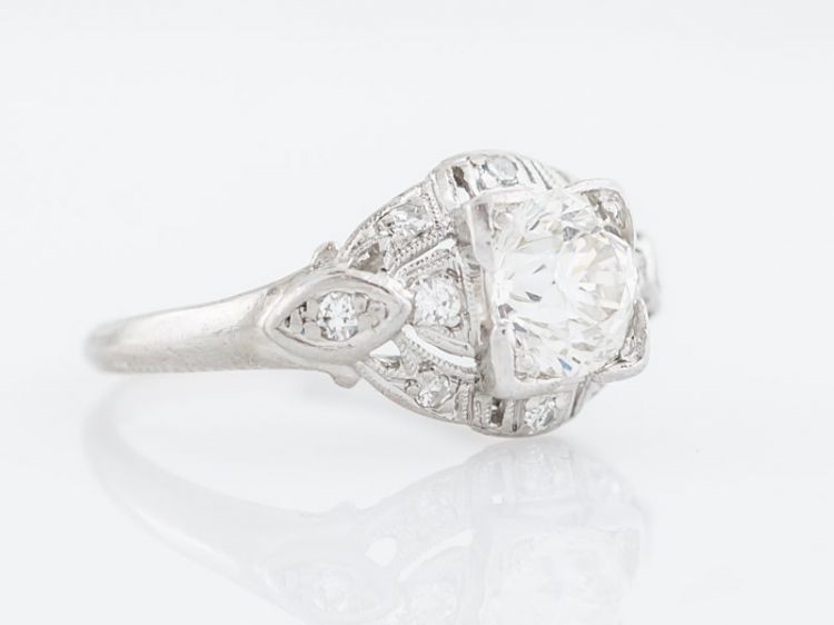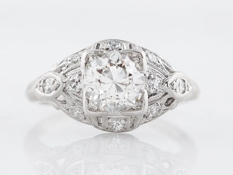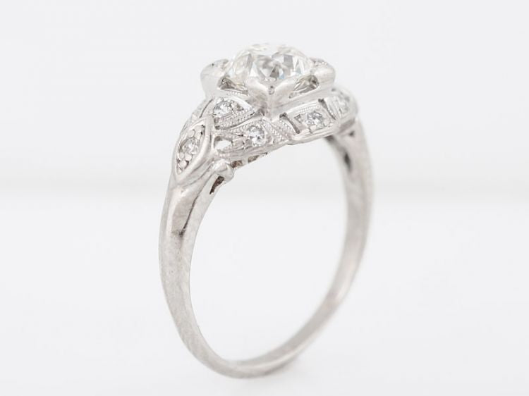 Antique Engagement Ring Art Deco .72 Old European Cut Diamond in Platinum