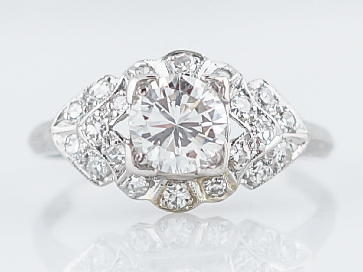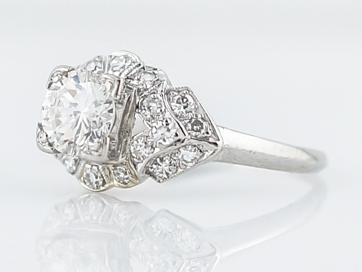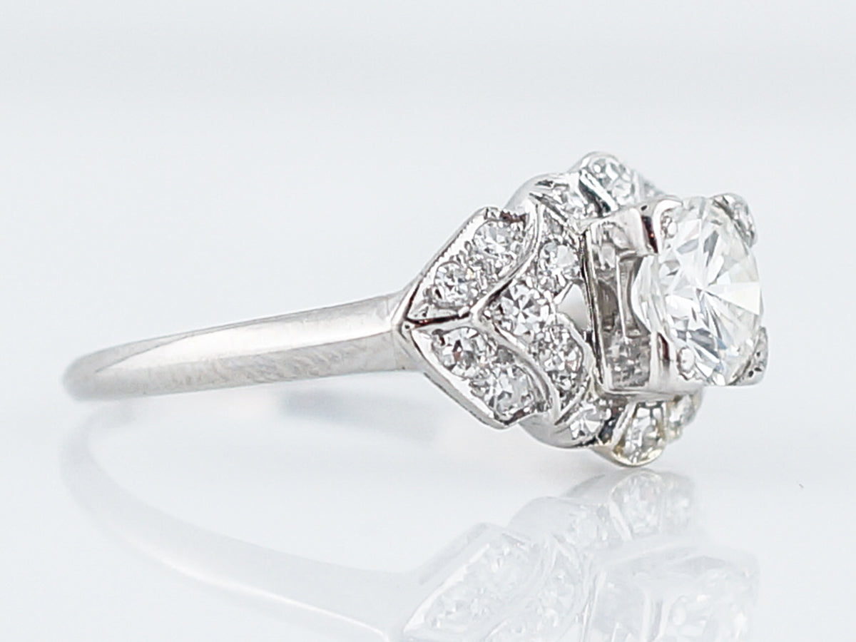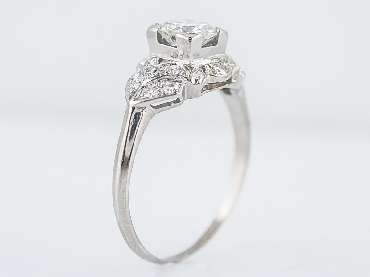 Antique Engagement Ring Art Deco .78 Round Brilliant Cut Diamond in Platinum