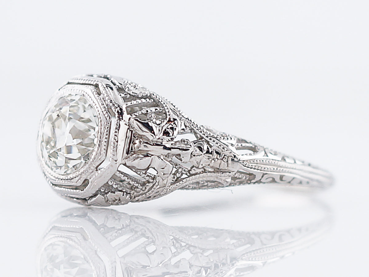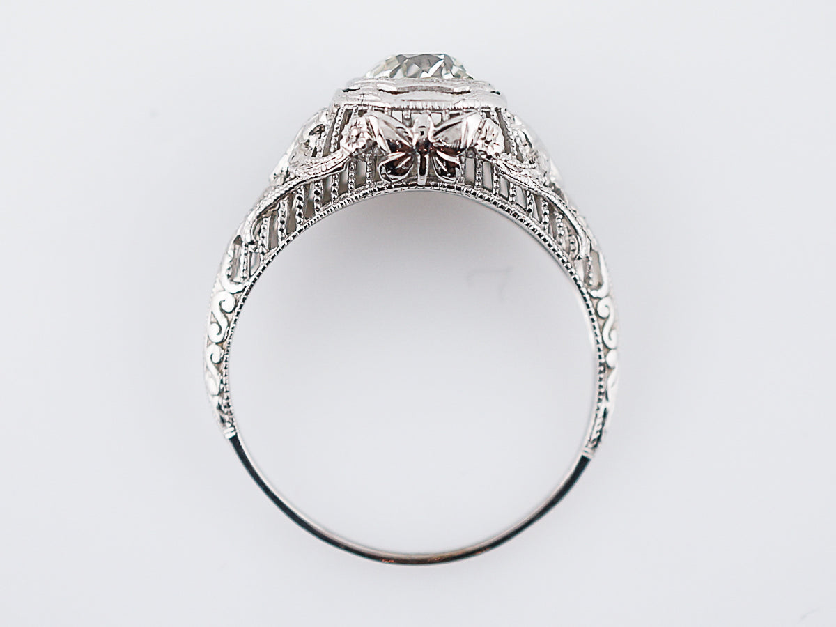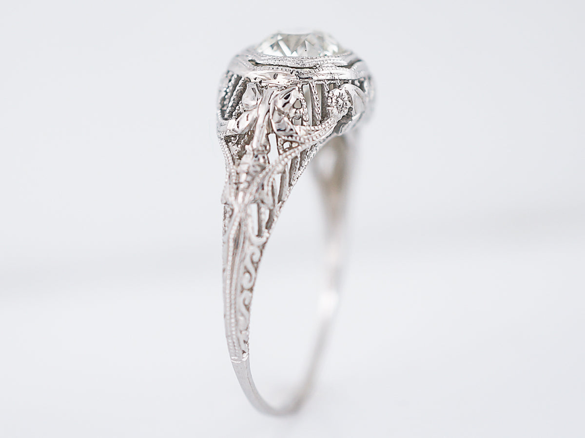Antique Engagement Ring Art Deco .78ct Old European Cut Diamond in 18k White Gold