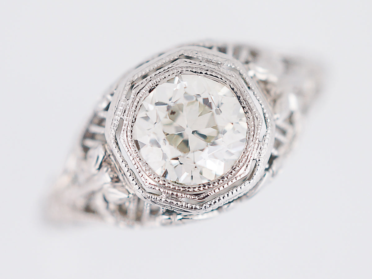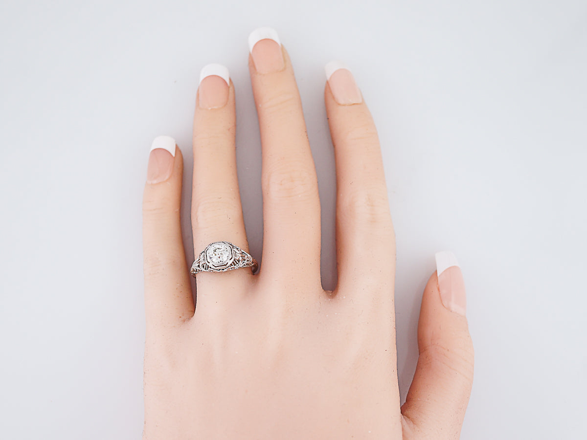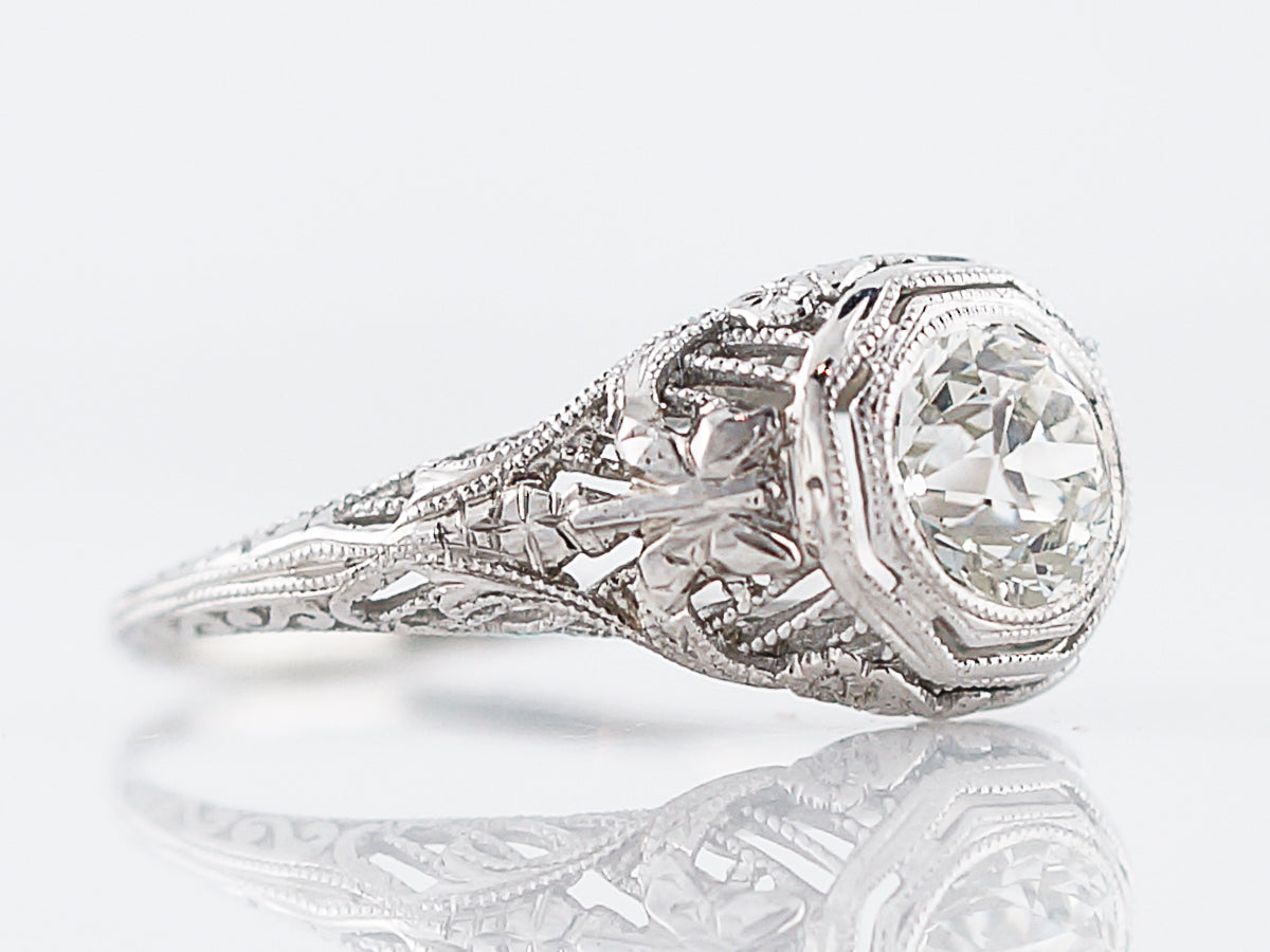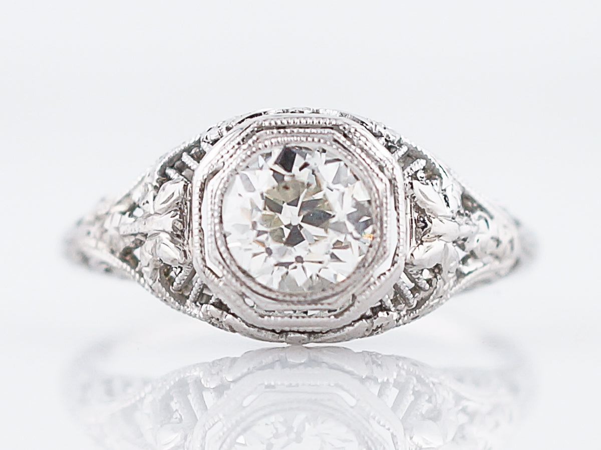 Antique Engagement Ring Art Deco .78ct Old European Cut Diamond in 18k White Gold