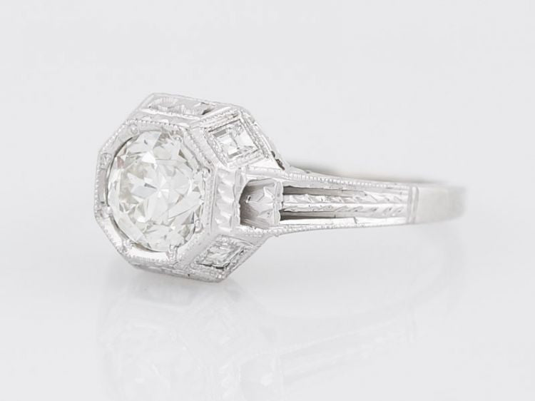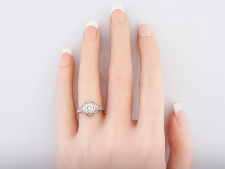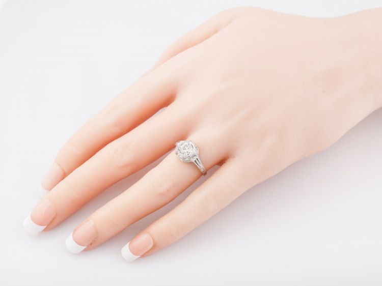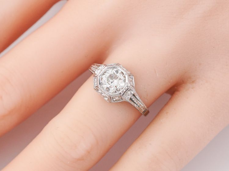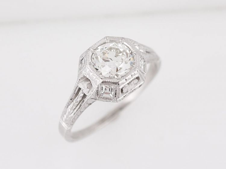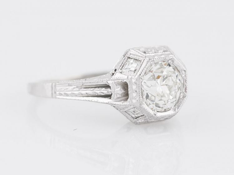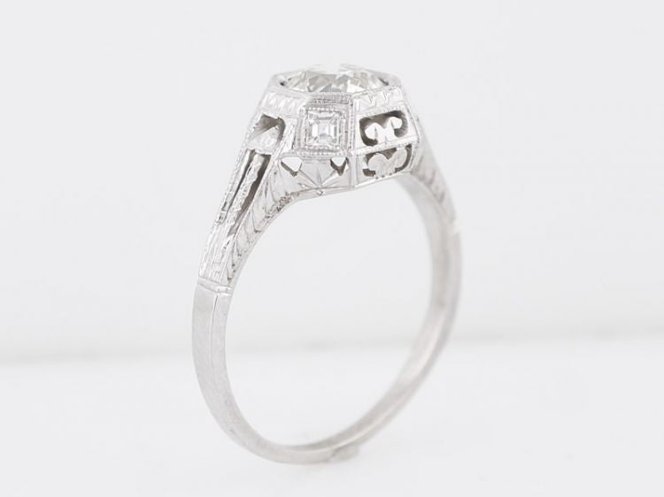 Antique Engagement Ring Art Deco .80 Old European Cut Diamond in 18k White Gold