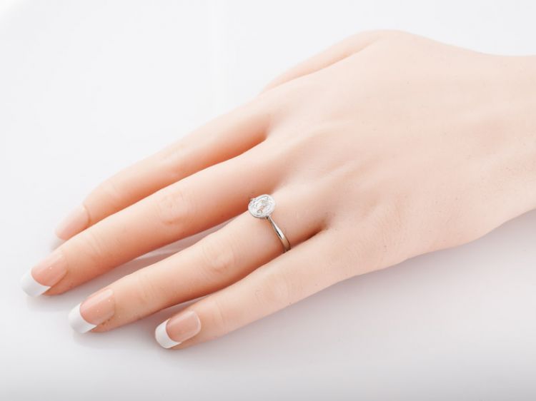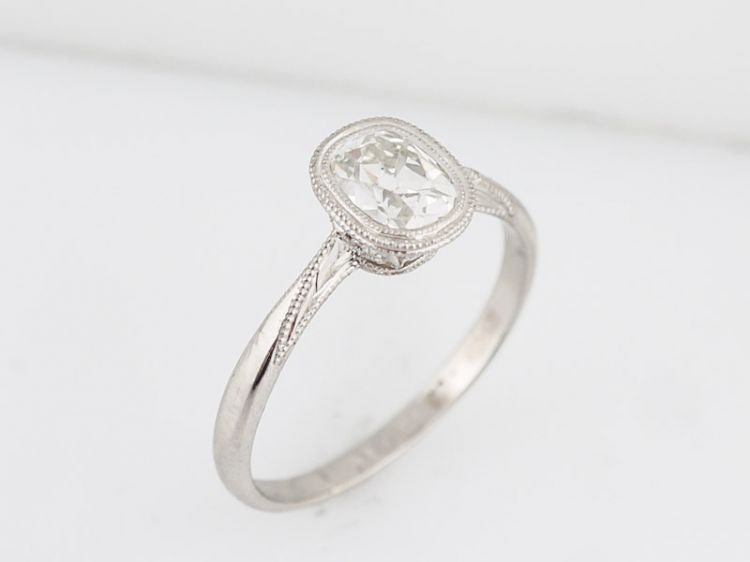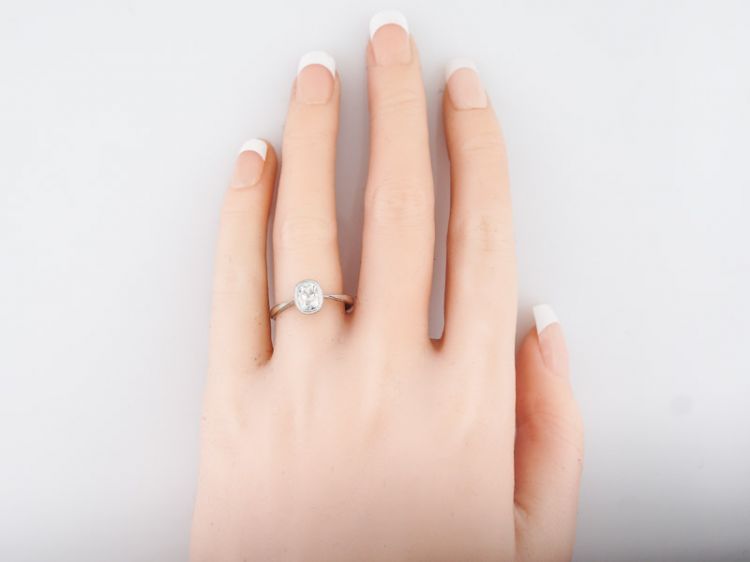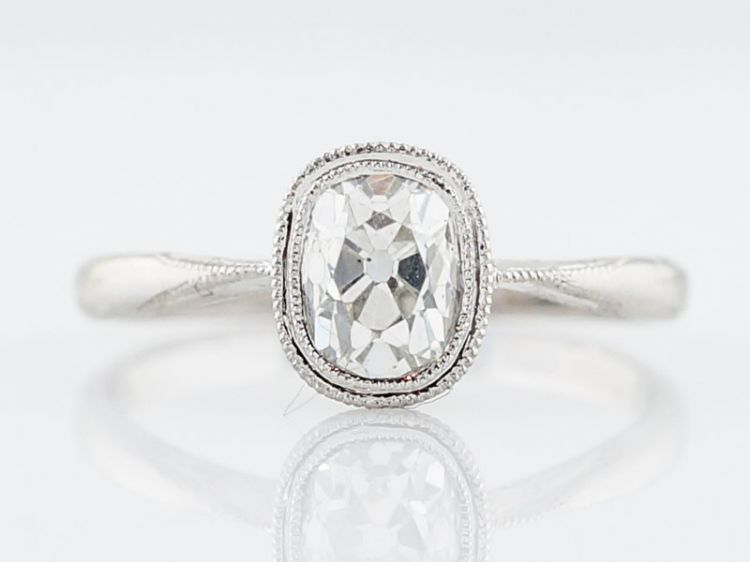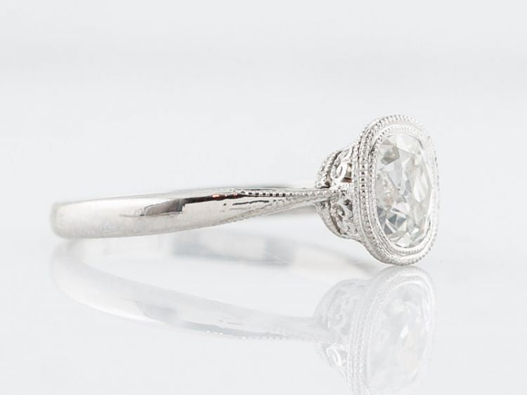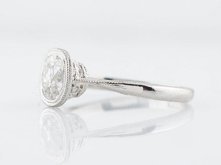 Antique Engagement Ring Art Deco .93 Old Cushion Cut Diamond in Platinum