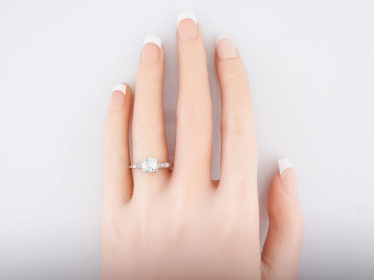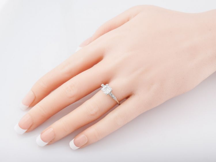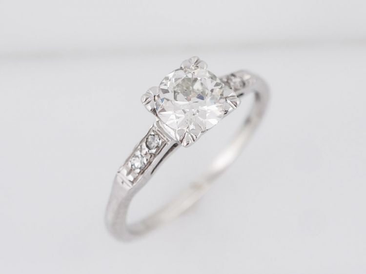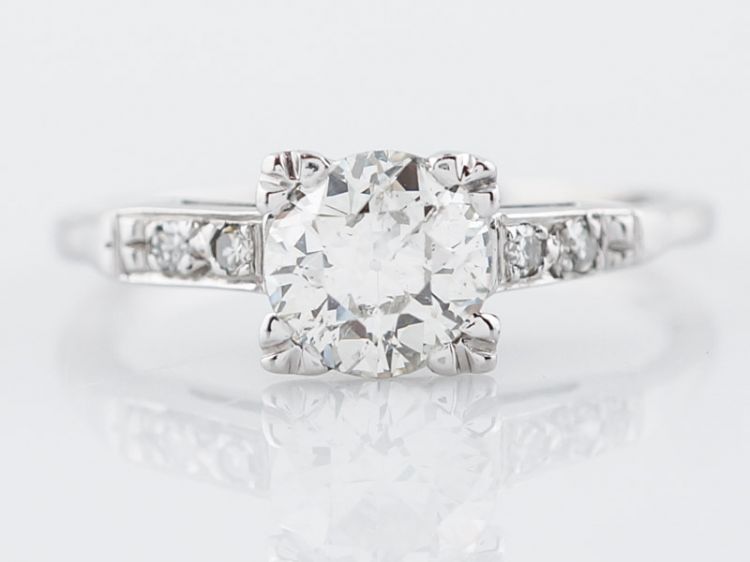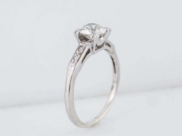 Antique Engagement Ring Art Deco .95 Old European Cut Diamond in 14k White Gold