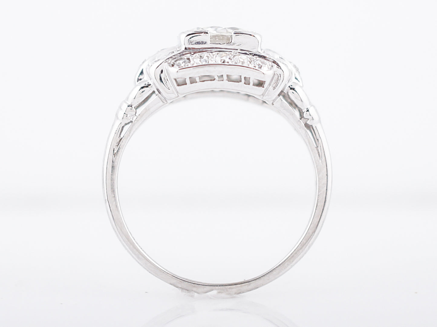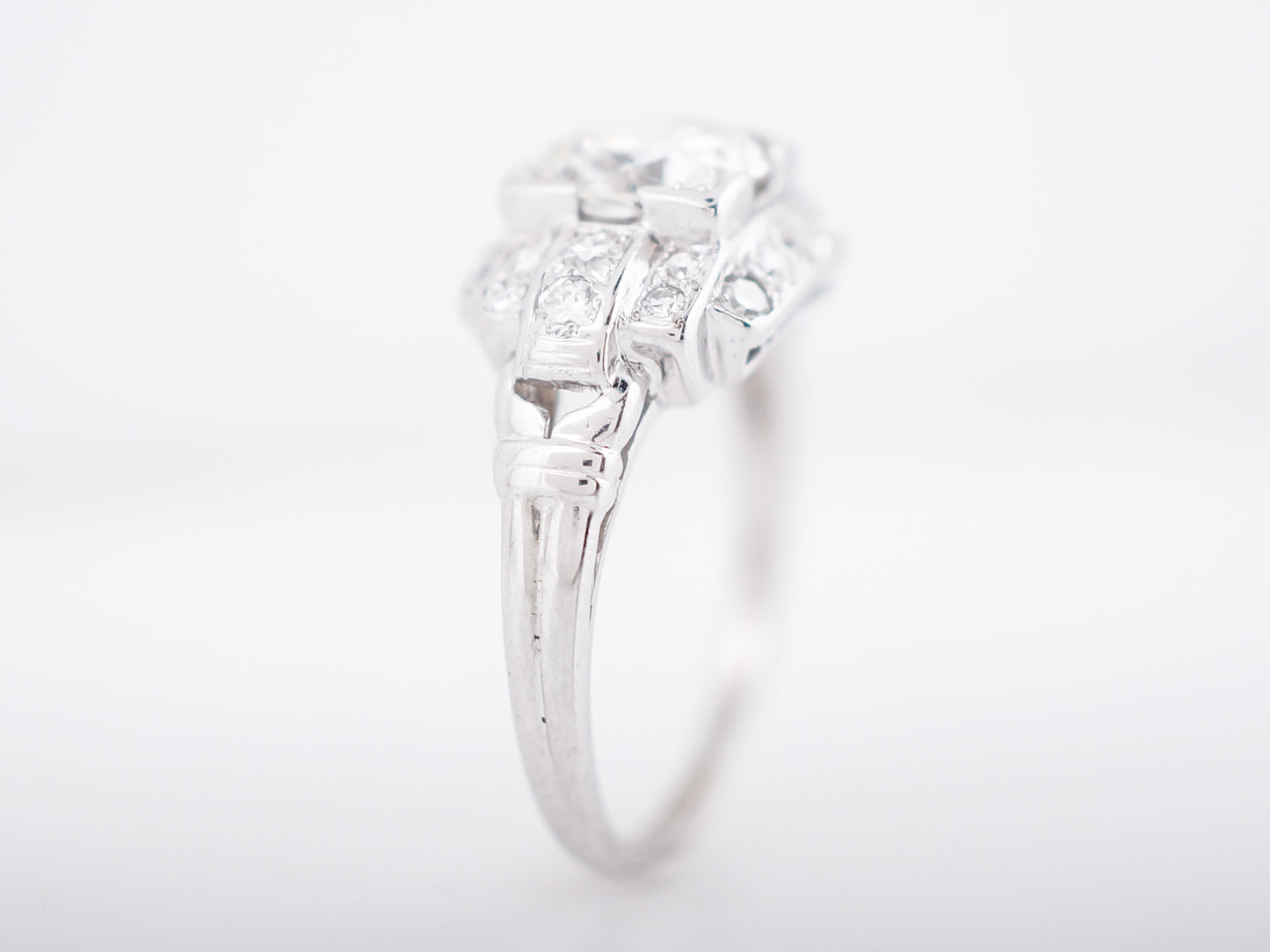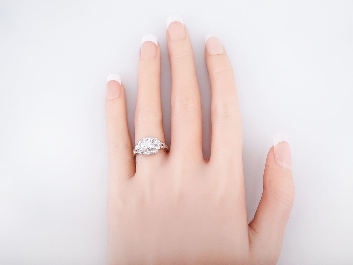 Antique Engagement Ring Art Deco .99 Round Brilliant Cut Diamond in 18k White Gold