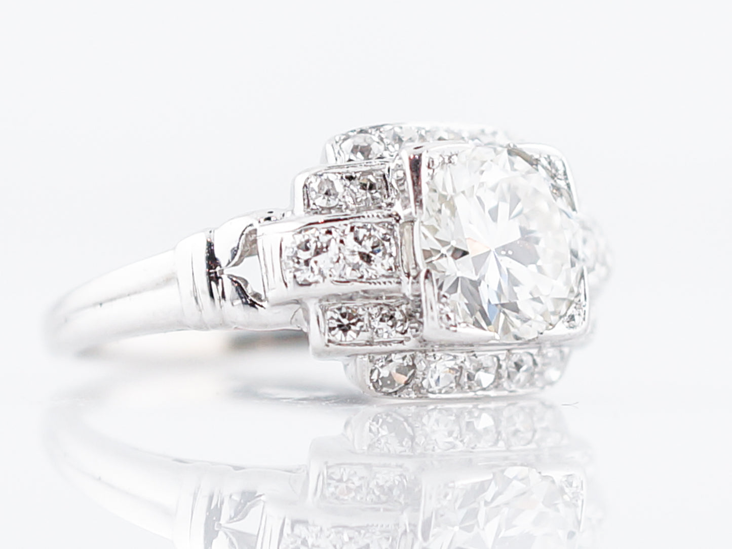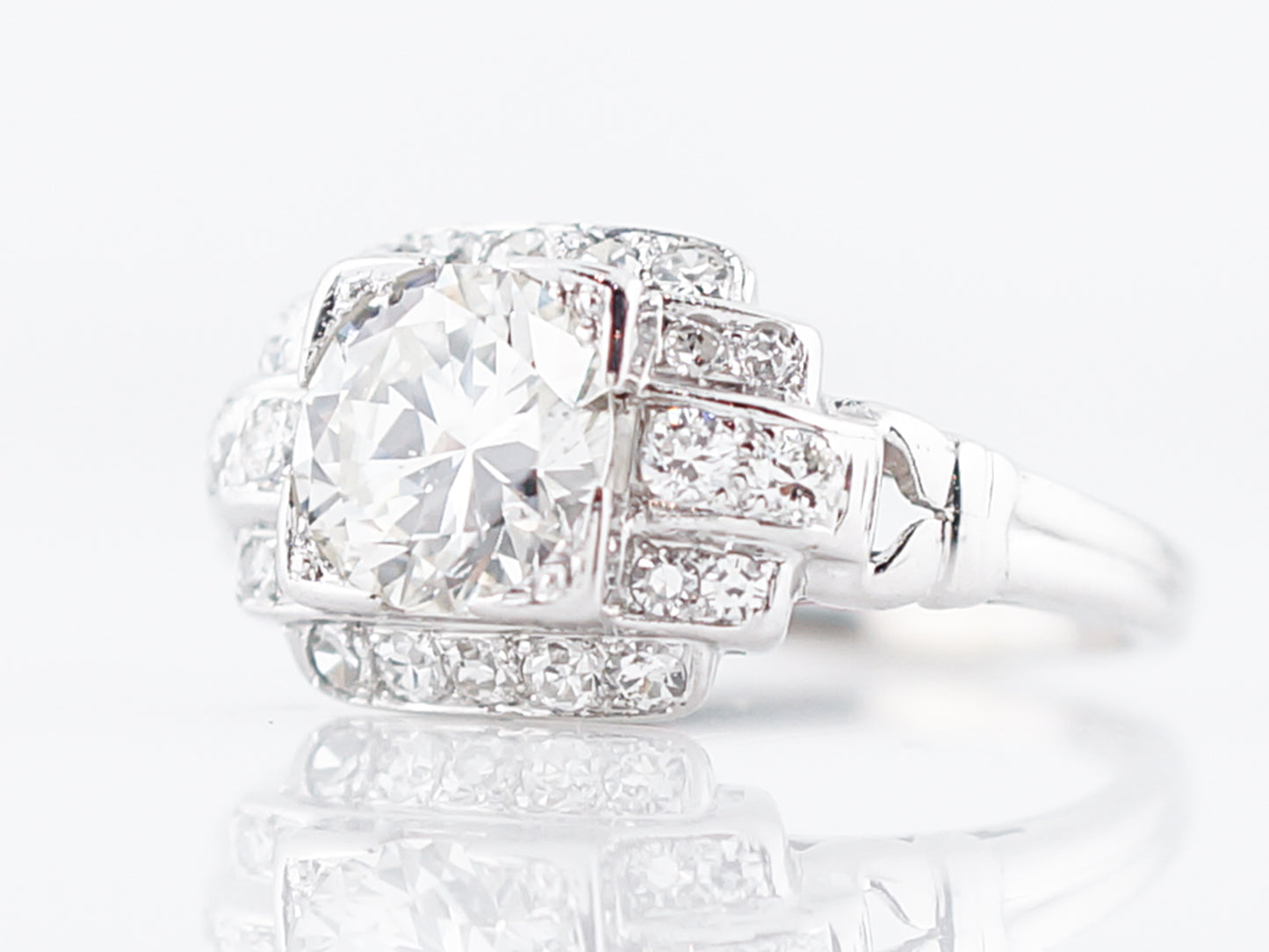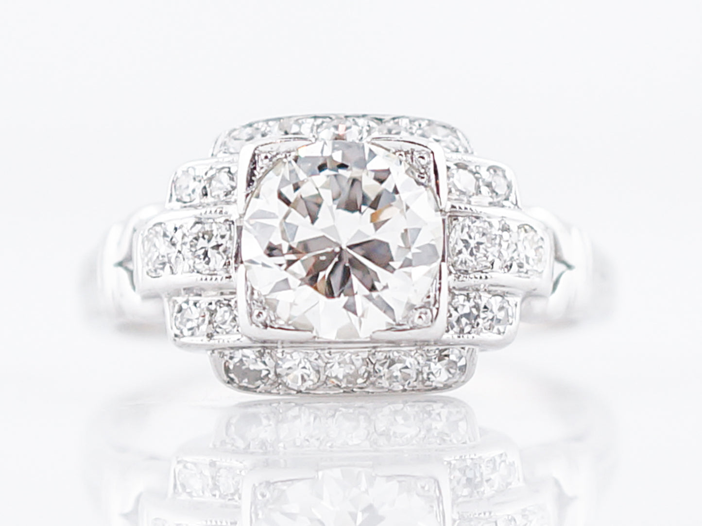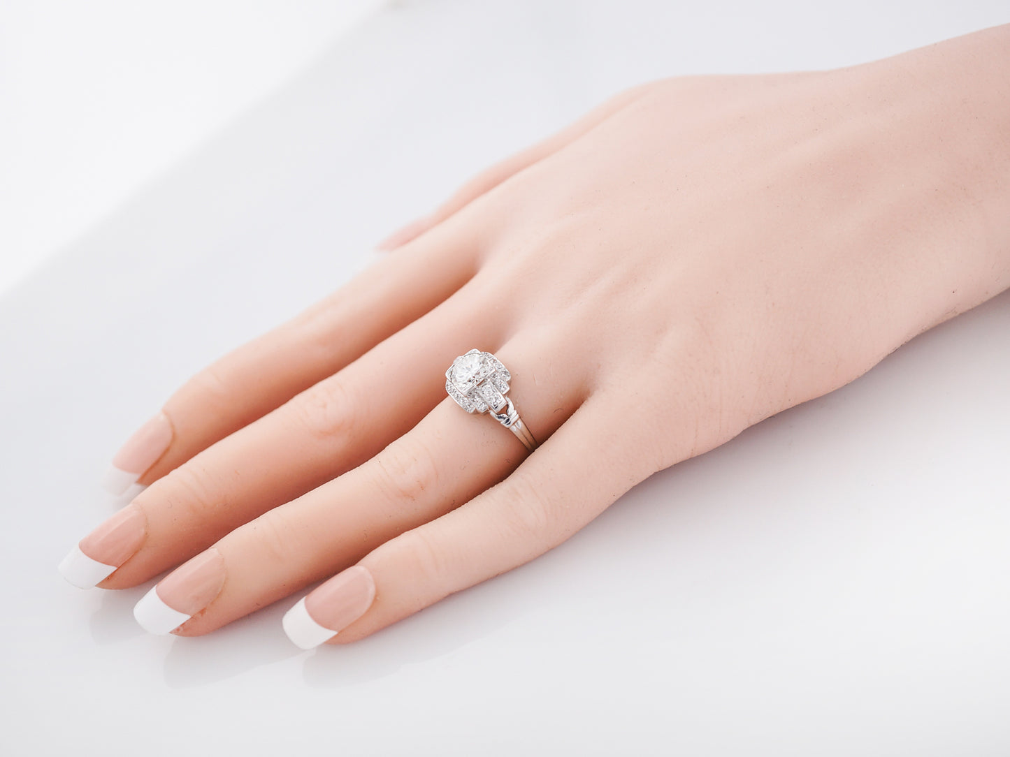 Antique Engagement Ring Art Deco .99 Round Brilliant Cut Diamond in 18k White Gold