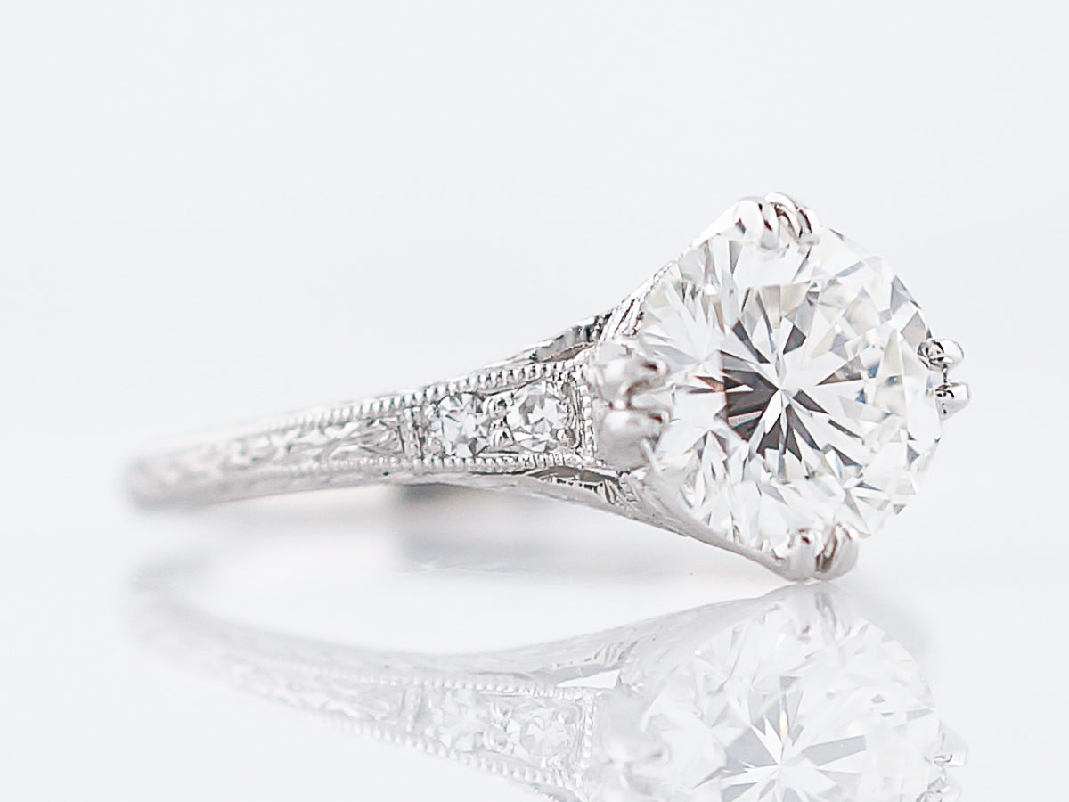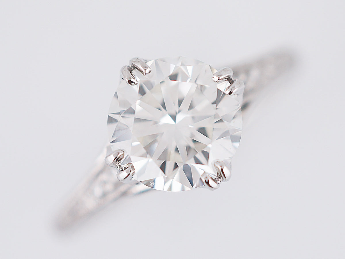 Antique Engagement Ring Art Deco GIA 1.50 Round Brilliant Cut Diamond in Platinum
