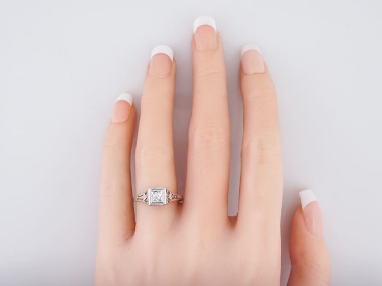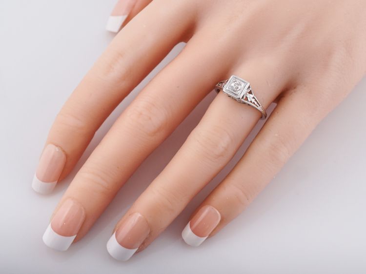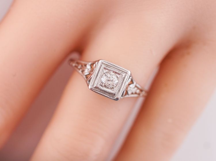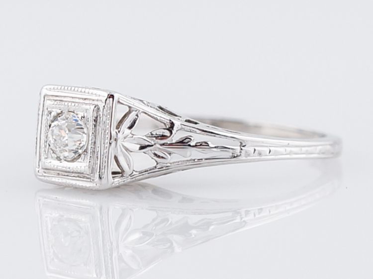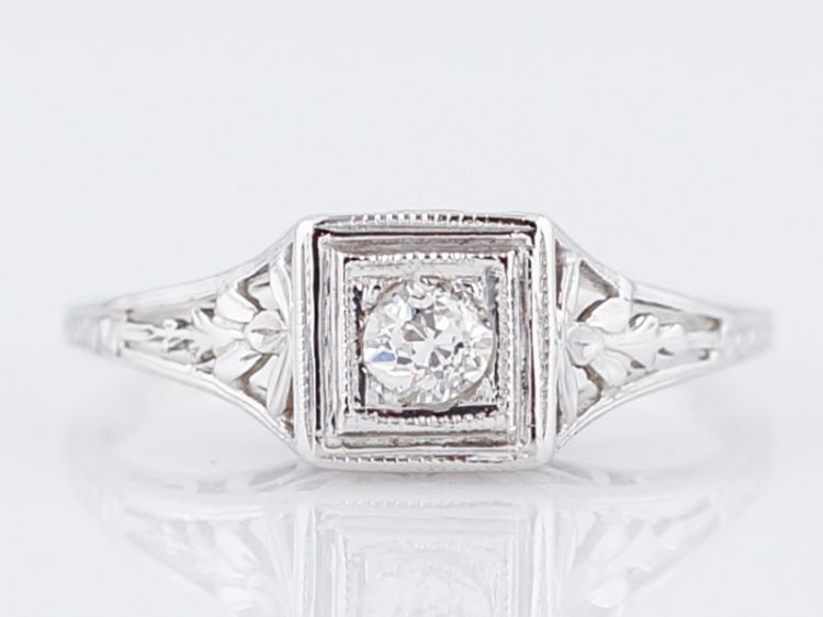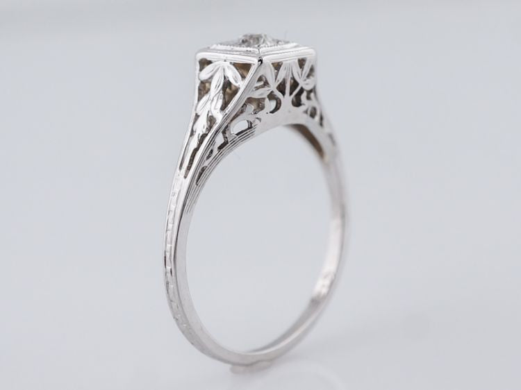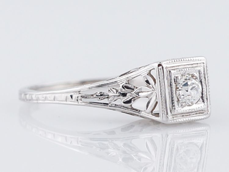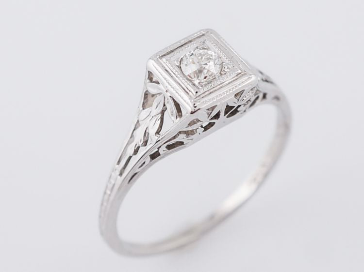 Antique Engagement Ring Belais Bro Art Deco .11 Old European Cut Diamond in 18k White Gold