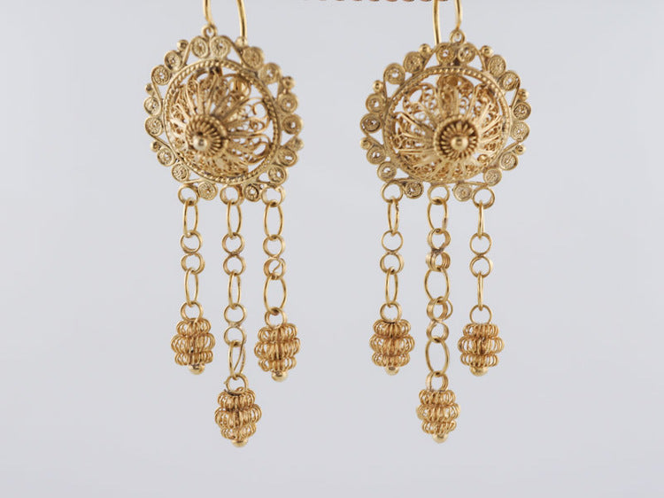 Antique Late Victorian Dangle Drop Earrings in 20k Yellow Gold